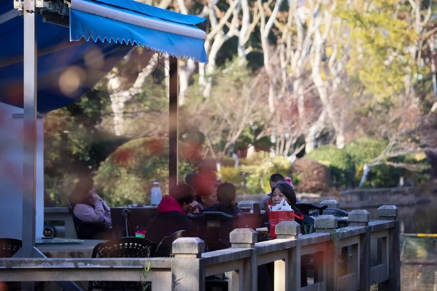 以鲁迅公园为例,近期客流多了三四成,人们的在园时间亦拉长——无论是“漂亮饭+美景打卡”的游客模式,还是“贴心服务+景观座聊天”的熟客模式,都远超“游园20分钟”。