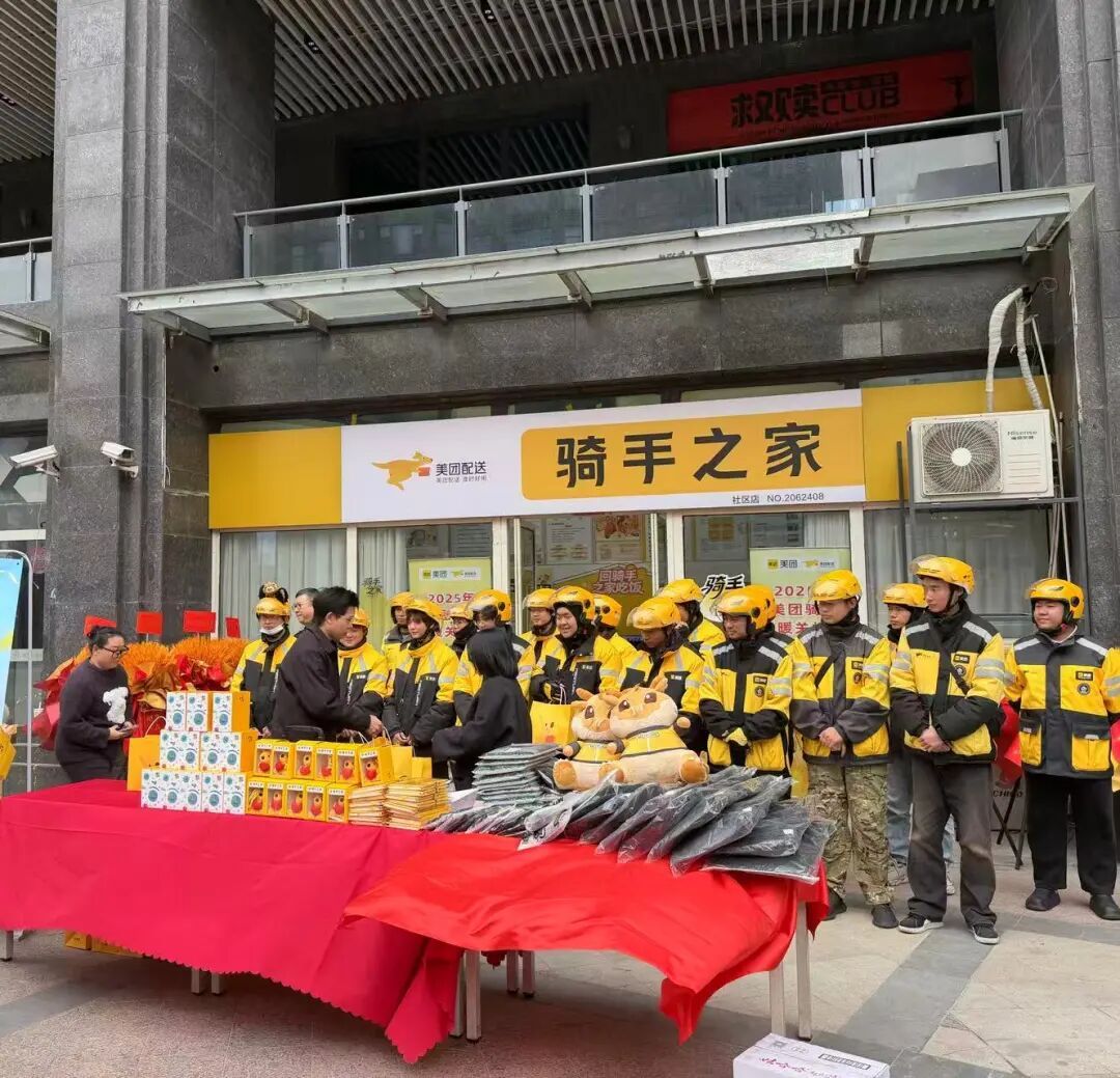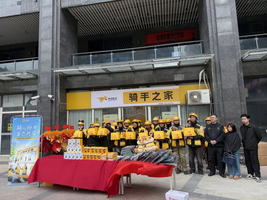 区市监局、区民协网约配送员工委会代表与平台代表一同将精心准备的“骑手温暖包”亲手送到骑手代表手中,传递了对广大骑手的诚挚慰问与真切关怀。