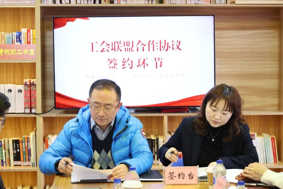 仪式现场,黄浦区税务局与淮海中路街道社区卫生服务中心共同签署了工会联盟合作协议,并一同为“黄税健康驿站”揭牌,这一暖心工程正式拉开帷幕。