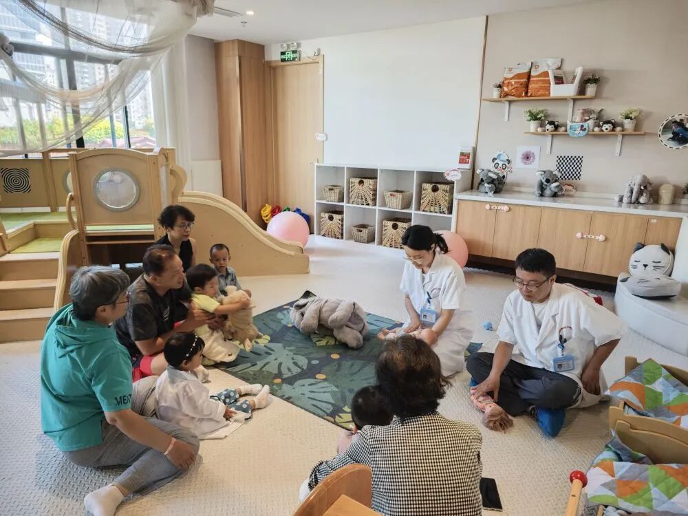 上海静安区江宁路街道社区卫生服务中心的医生走进“宝宝屋”,指导家长做小儿揉腹操(新华社)