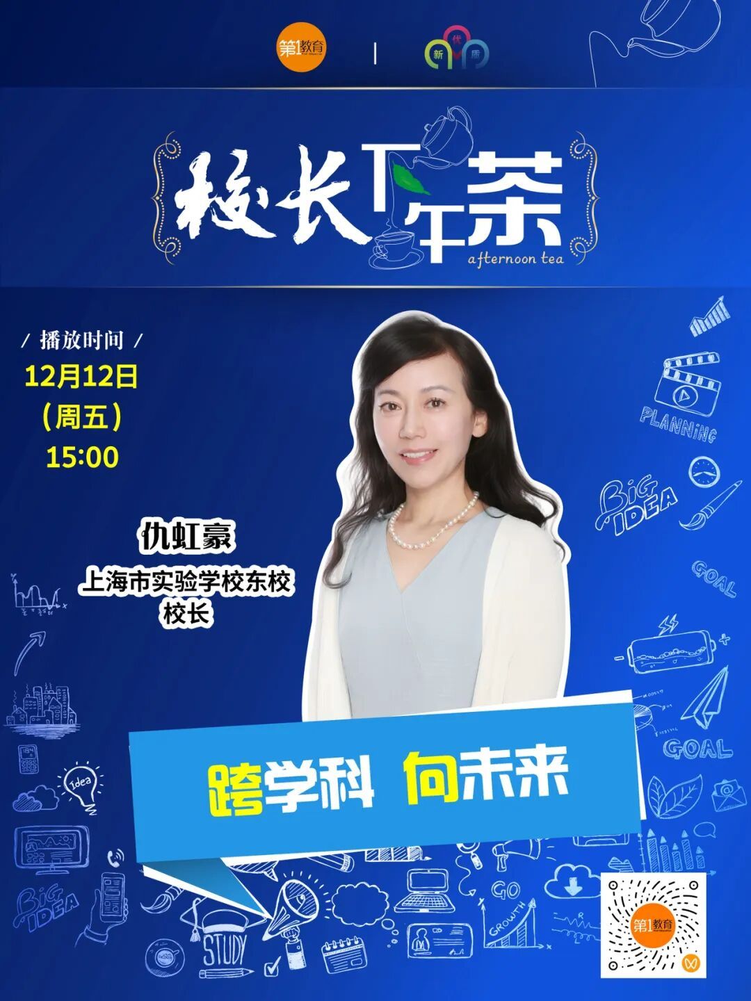 自2023年9月起,上海市新优质学校研究所、上海教育报刊总社新媒体平台“第一教育”共同推出“校长下午茶”节目,邀请新优质学校“掌门人”及相关教育专家走进演播室,畅聊教育理念与实践、分享经验与成果。