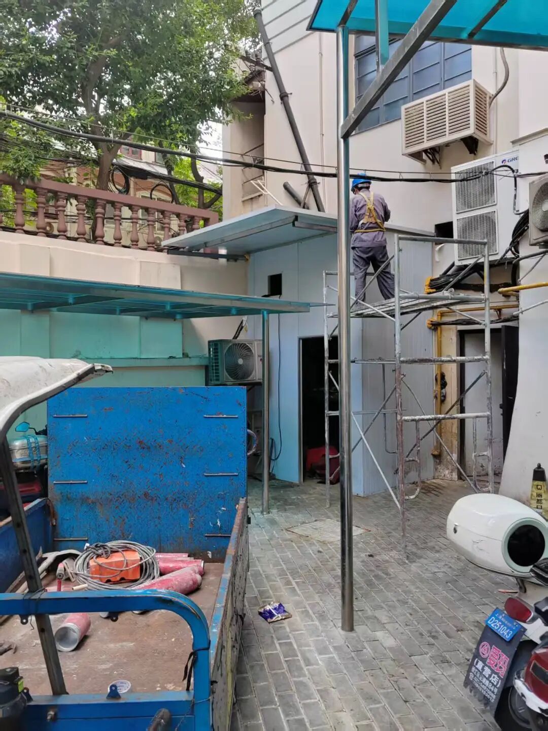 起初,商铺店主通过提高除油烟设备清洗频次、减少店内炒菜类品种、在排烟口增加设备罩等方式开展自行整改,同时属地物业加大下水道的疏通频次,并加强了泰兴大楼的弄内保洁。此后,油烟扰民情况虽有一定改善,但仍反反复复,更糟糕的是,还引发了市民对排烟口设备罩疑似违法建筑的新投诉。“自行整改+配套优化”的初步整治并未取得满意收效。