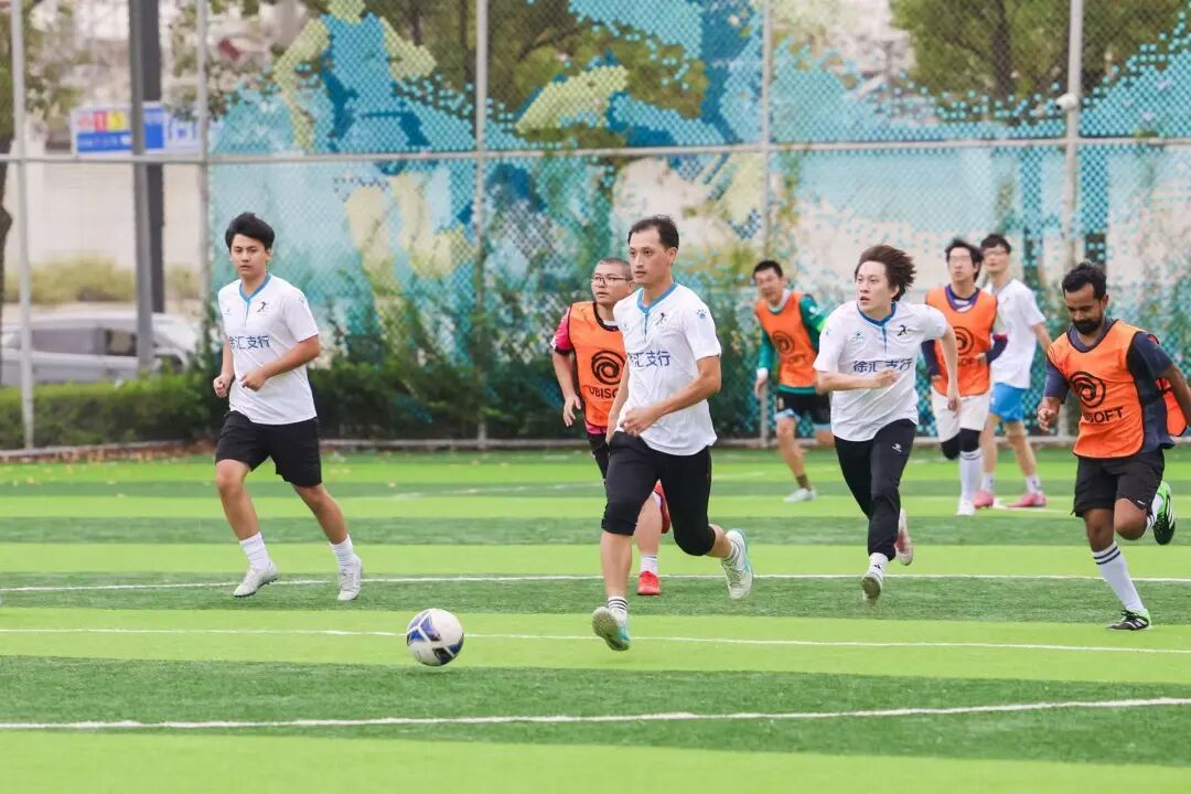 本次赛事自筹备起便聚焦“打破企业壁垒、促进跨界交流”,漕河泾街道整合辖区资源,联合上海市徐汇区社会体育管理中心提供专业指导,依托徐汇万科中心场地配套,设计“淘汰赛+小组循环赛”机制,兼顾竞技性与交流性。赛场上,球员们全力以赴,精准传球、精彩射门接连上演,职场人化身“球场健将”,在协作中释放压力,更让不同企业伙伴从“陌生同事”变为“并肩战友”。