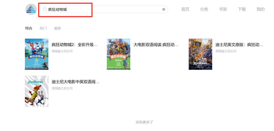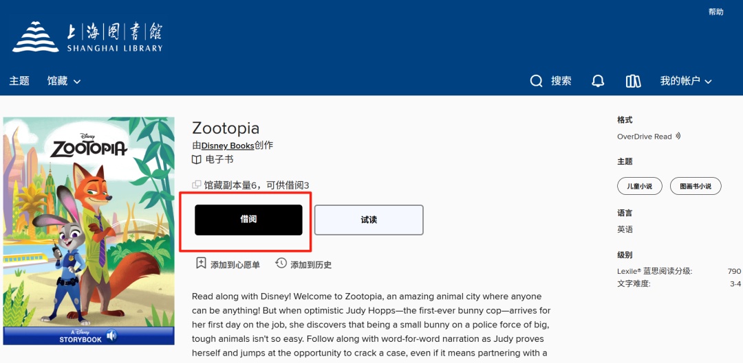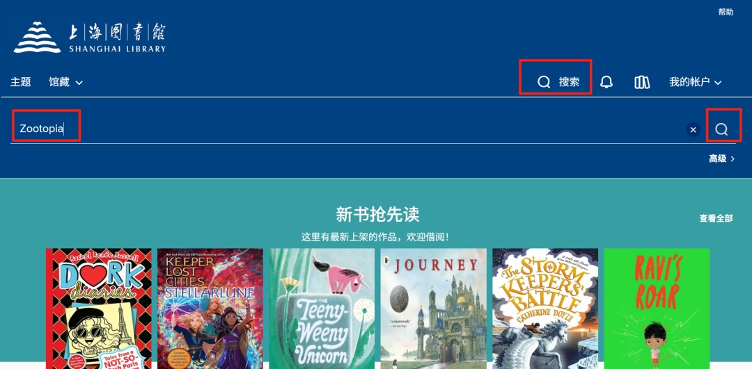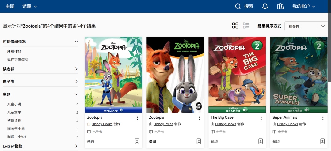 输入检索的在资源库内搜索“Zootopia”(首次访问的读者可点击右上角“登录”,依次输入用户名和密码登录微阅读,后续访问将不需要再次登录)