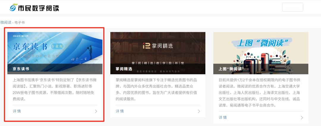点击菜单栏“我的图书-微阅读-电子书-京东读书/掌阅精选”进入资源库