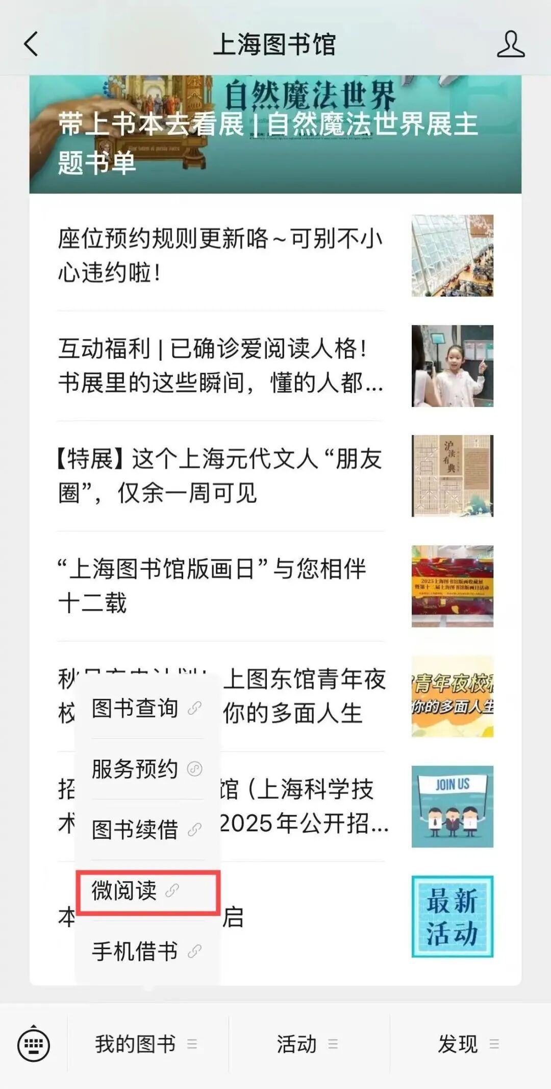 关注上海图书馆公众号,找到微阅读!!