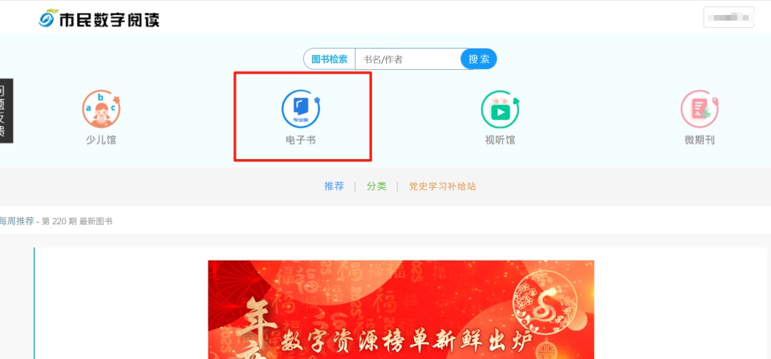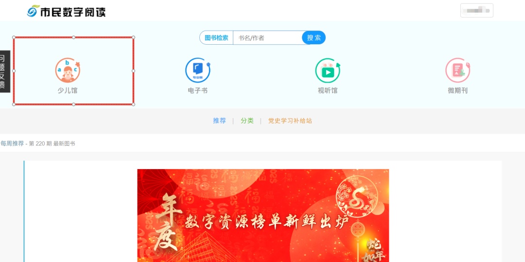 点击菜单栏“我的图书-微阅读-少儿馆”进入资源库