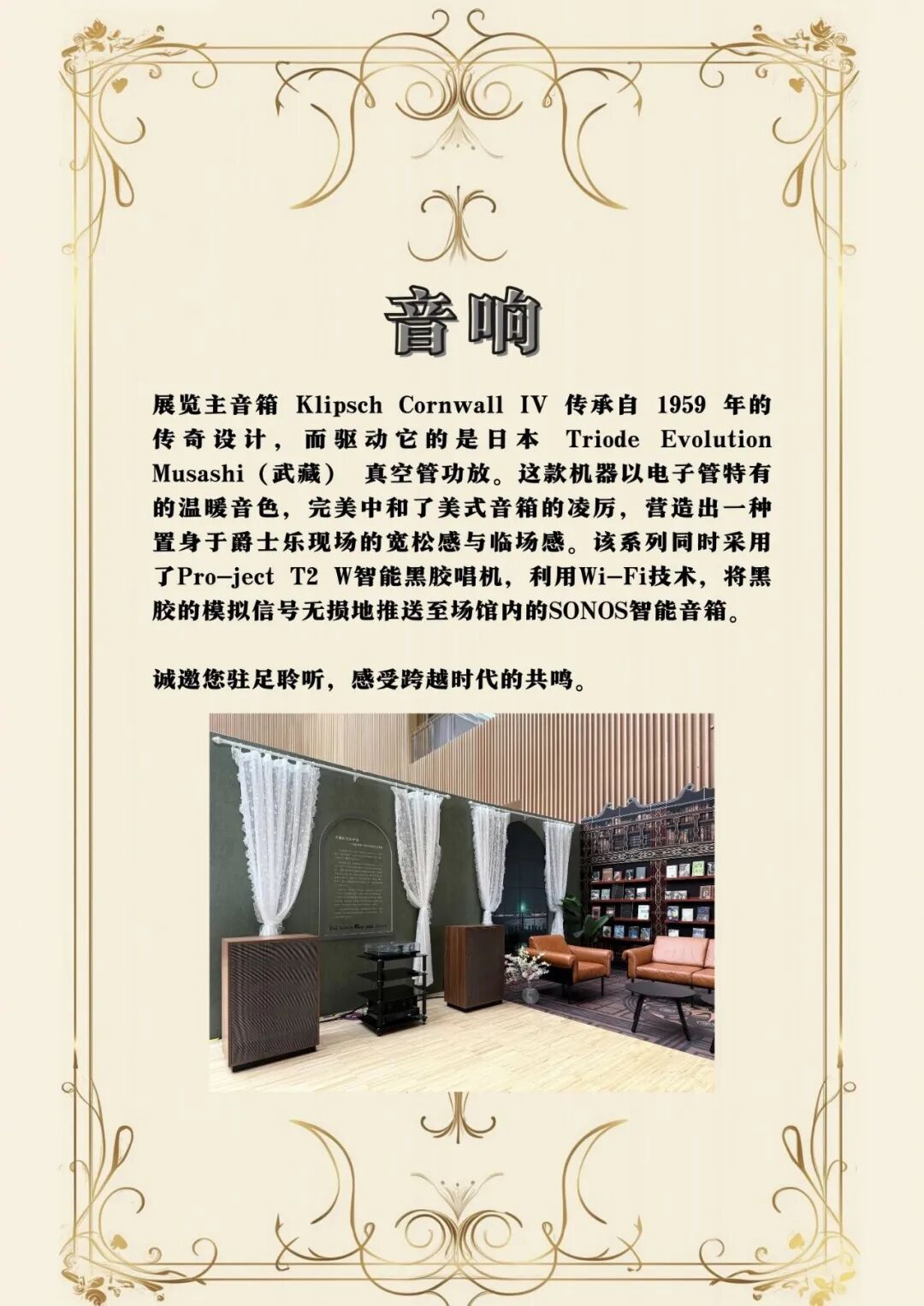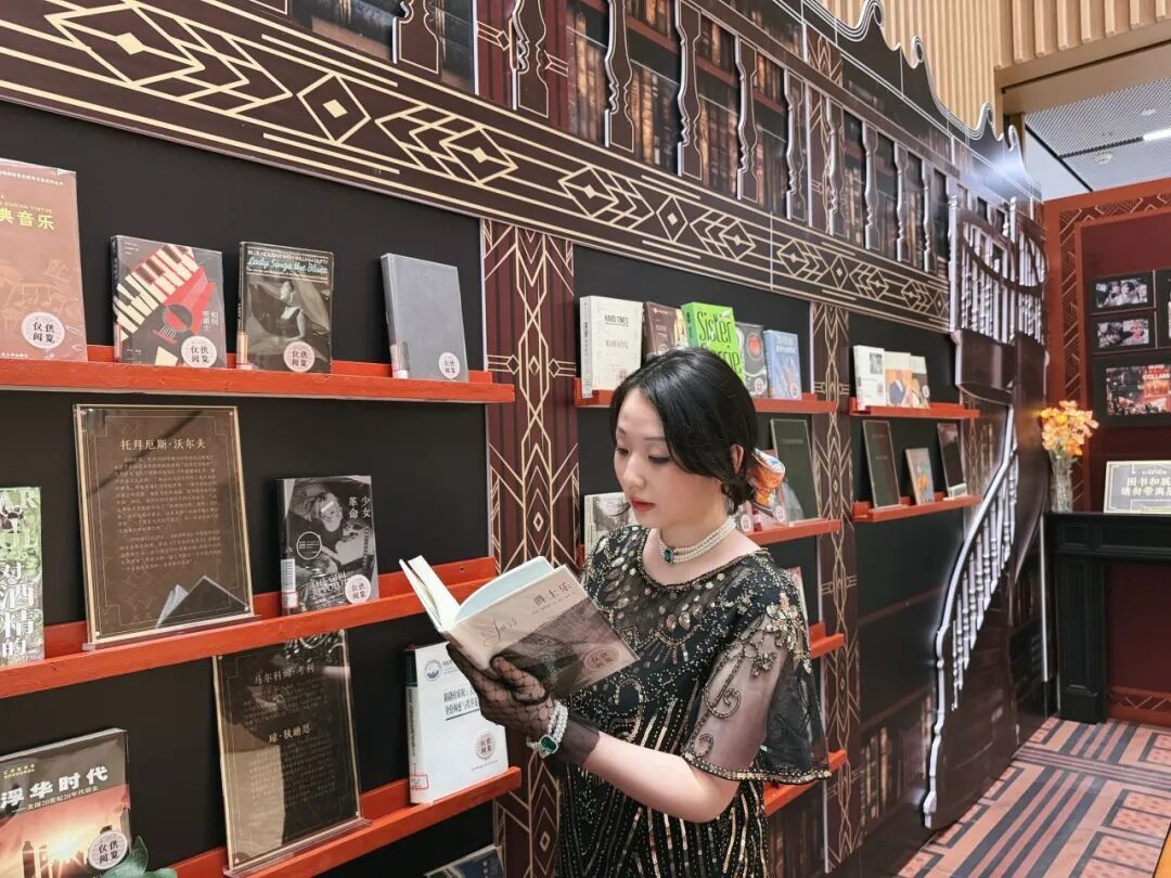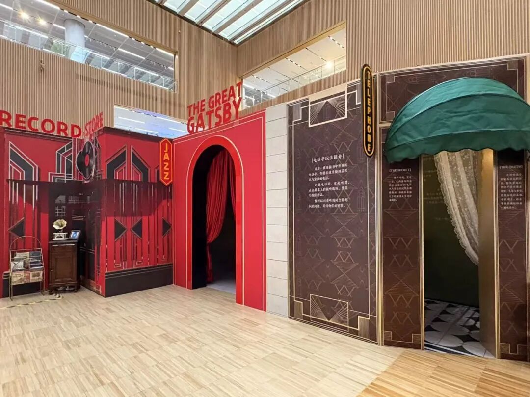 在“乐听阅享”音响音乐文化月中,我们将音乐、音响与书有机融合到一起,特别推出“爵士时代的回响”主题沉浸展,以《了不起的盖茨比》为蓝本,拆解小说文本,融合装饰艺术风格设计、黑胶唱片、号角喇叭音响、AI技术等元素,复原盖茨比的客厅和私人图书馆,打造跨越百年的时空对话。