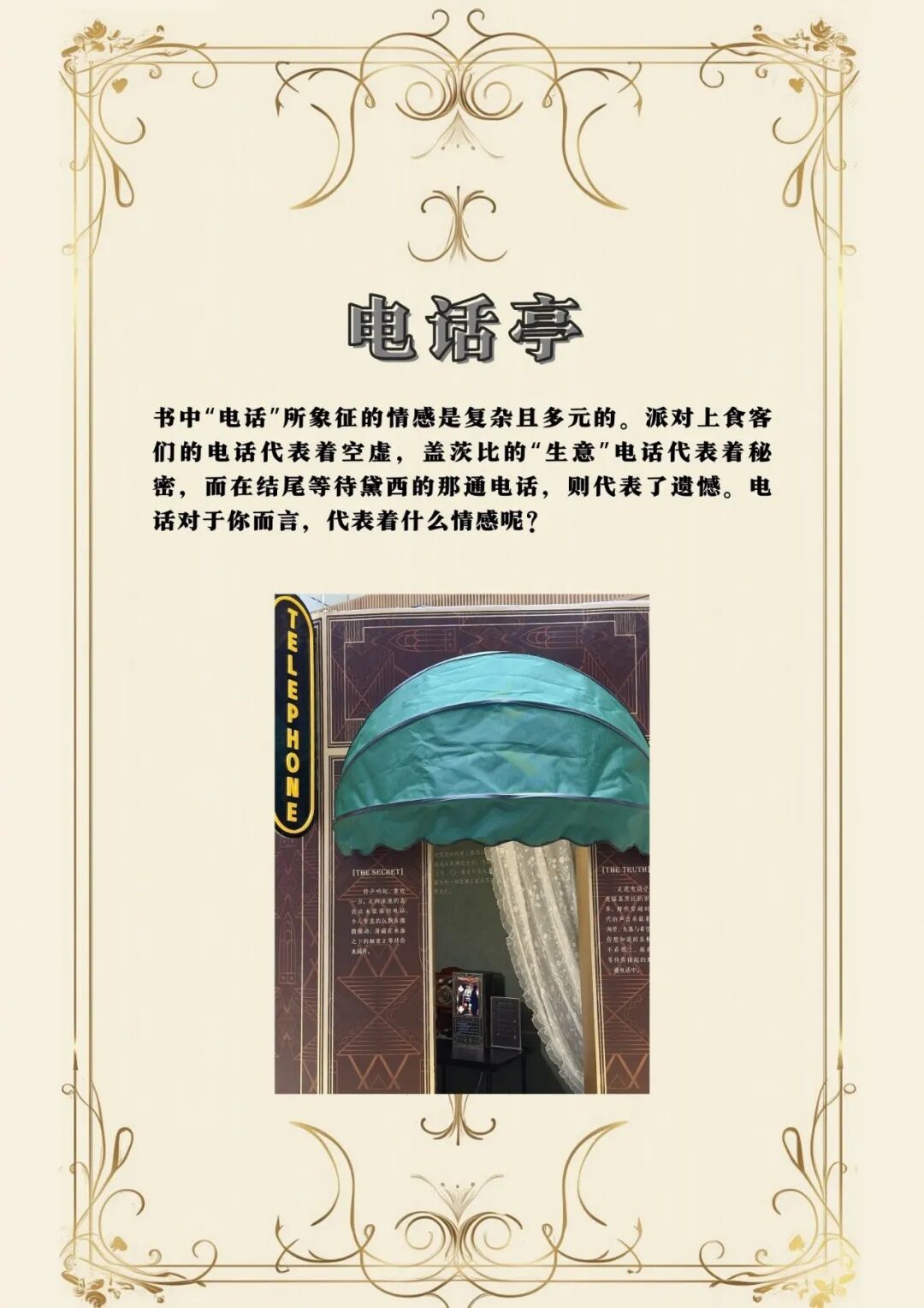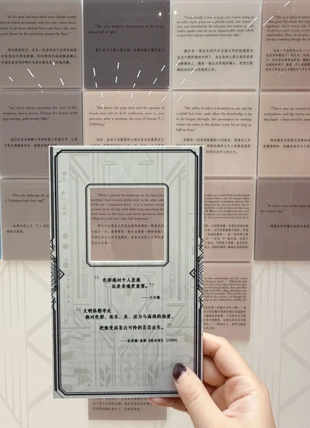 小说中,盖茨比的私人藏书房是揭露其真实身份的重要场景。展区根据小说进行了场景复刻,并陈列出菲茨杰拉德及同代作者的作品,秘密就在这里!