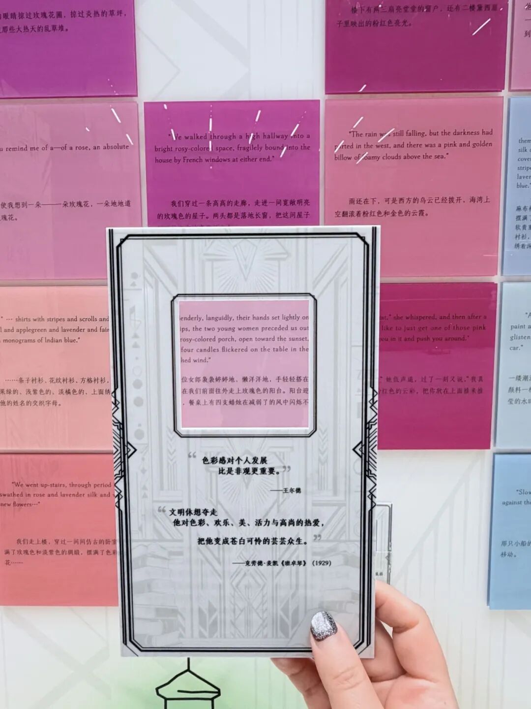 我们为每种色彩匹配了小说中的若干精彩段落。请来现场挑选一个你最喜欢的色彩和段落打卡吧~