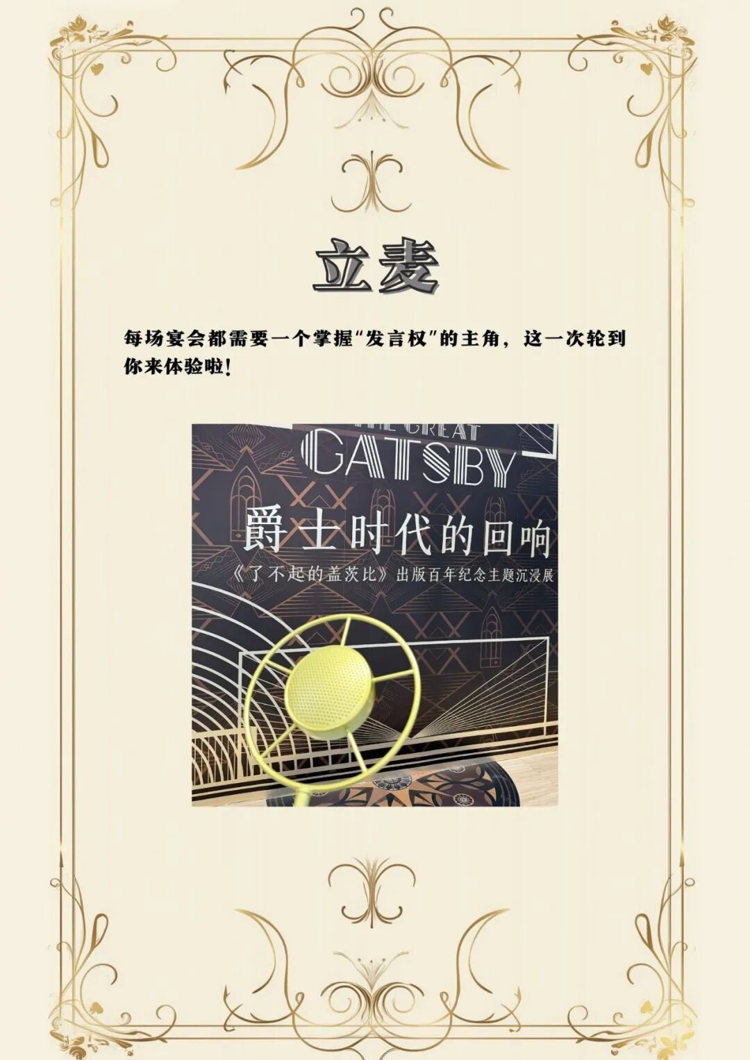 从即日起至展览结束,在小红书、微博、抖音、微信朋友圈等社交平台发布展览打卡图片3张并带上话题 #来上图东馆参加盖茨比的宴会 #乐听阅享,即可亲手盖下《了不起的盖茨比》的经典封面套色章。