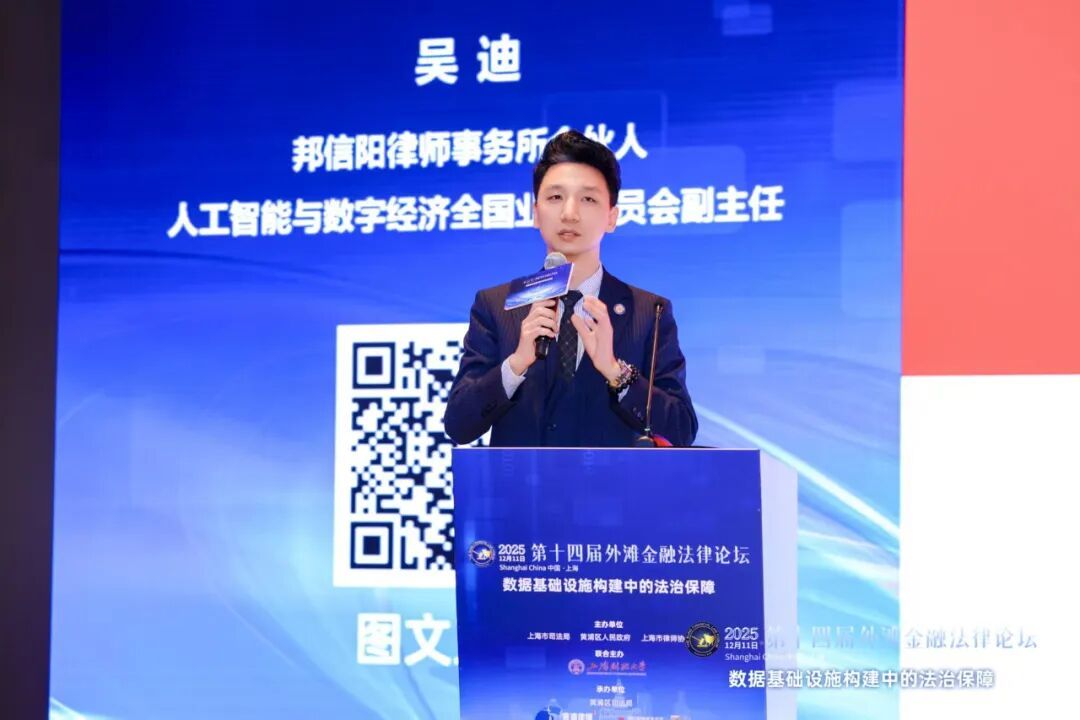 12月11日,第十四届“外滩金融法律论坛”在新天地举行。本届论坛以“数据基础设施构建中的法治保障”为主题,旨在凝聚共识,筑牢数据基础设施的法治根基,推动数字经济高质量发展。黄浦区委副书记、区长徐惠丽,市司法局党委书记、局长顾全,上海财经大学校长、党委副书记刘元春等出席论坛。黄浦区领导李铭、汤宏,上海市国际贸易促进委员会副会长、上海国际仲裁中心副主任马屹,黄浦区人民检察院检察长谈倩,市律师协会会长邵万权,市、区有关部门负责人,企业界、法律界、学术界人士等参加论坛。