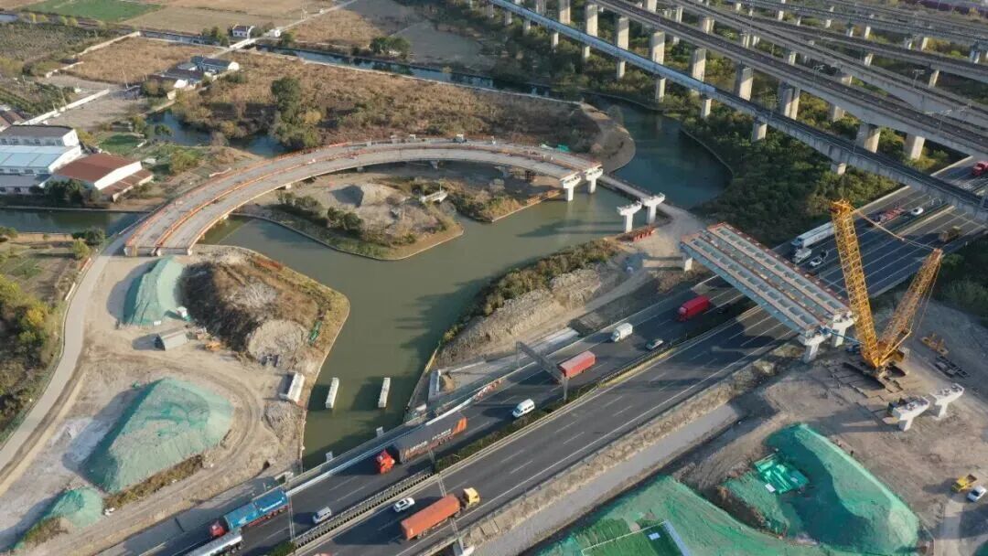 近日,G15沈海高速嘉金段6拓8改扩建工程2标范围内的金昌西路立交新建项目取得重要突破——立交上跨G15的钢箱梁顺利完成吊装,犹如一次“高空穿针”,精准跨越繁忙的高速公路。详见↓