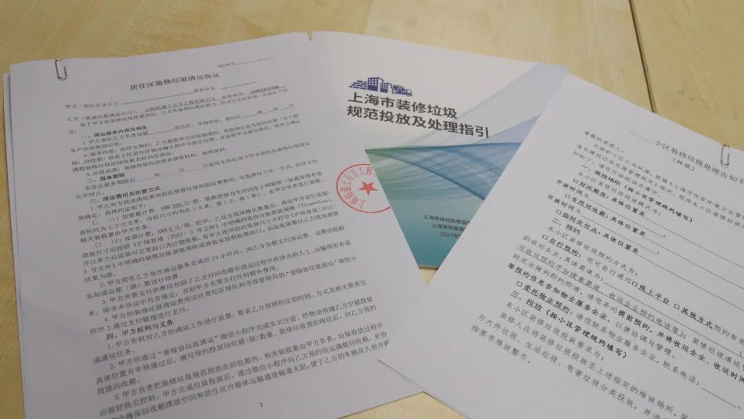 业主装修前需与物业签订《装饰装修管理协议》,协议中明确垃圾投放地点、清运收费标准及分类要求,同时物业会发放《装修垃圾处理告知书》,详细列明收运单位、开放时间等信息。