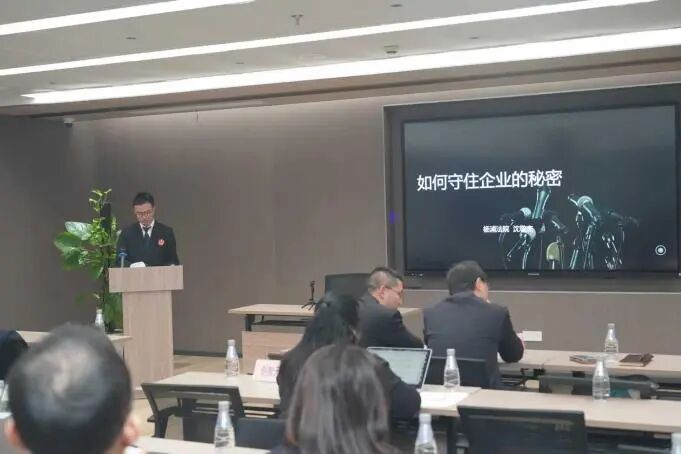 庭审结束后,杨浦区人民法院法官以《如何守住企业的秘密》为题,为企业代表带来了一场内容务实、针对性强的知识产权合规专题辅导。课堂上,企业代表积极提问,围绕“如何界定商业秘密”“合同签订中的知识产权条款如何约定”“内部制度留痕如何设计”等具体问题与法官互动交流,现场气氛热烈。