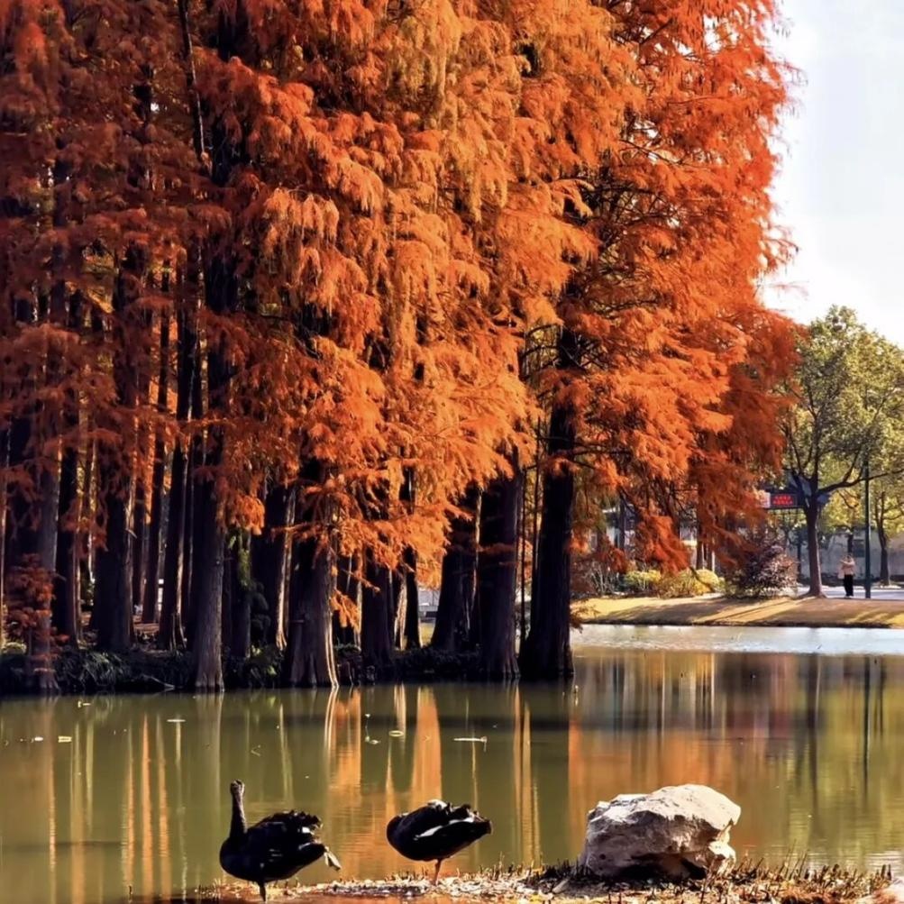 入园后首先是一片水杉林,秋冬季节黄叶满地,非常出片。