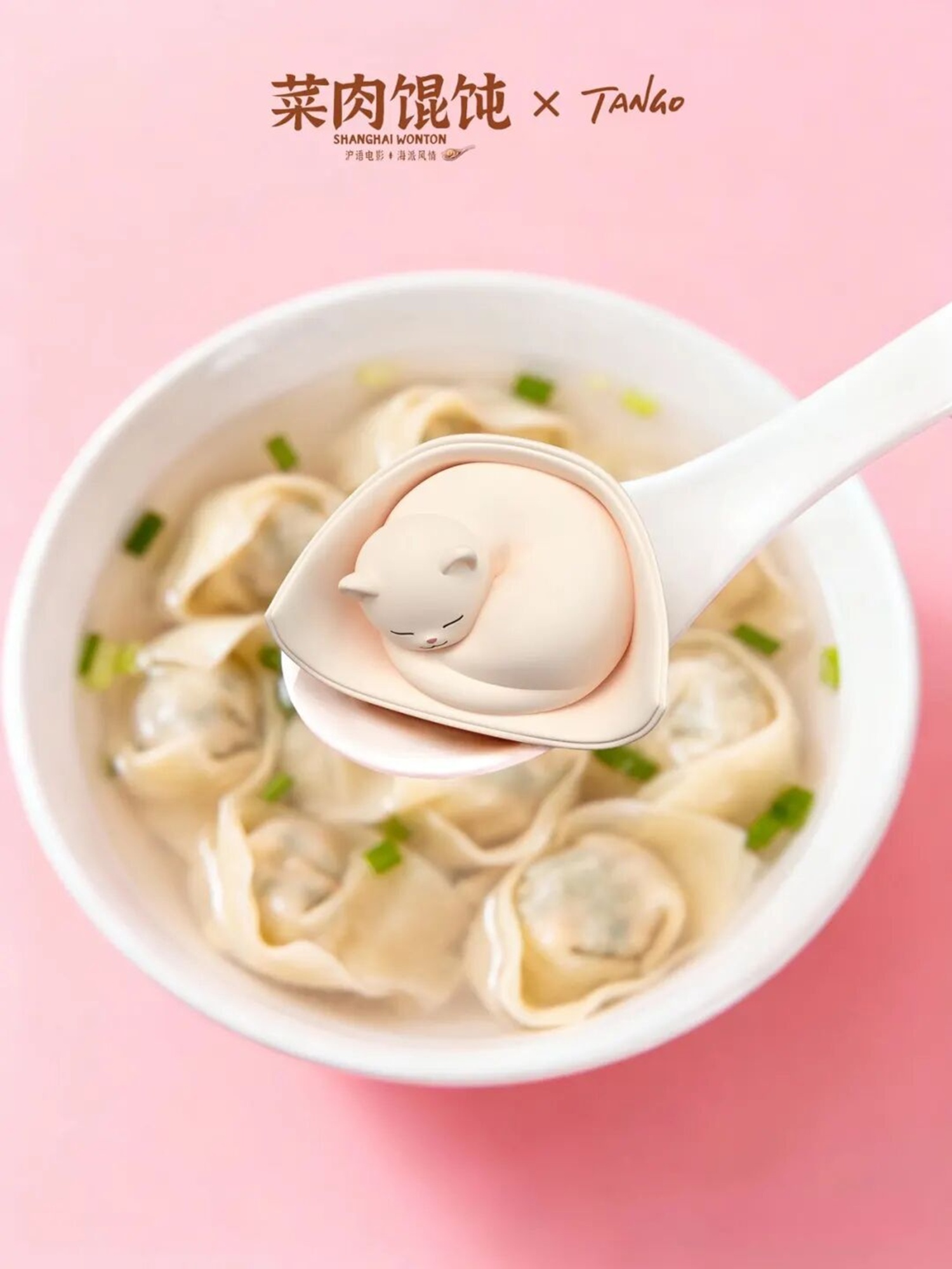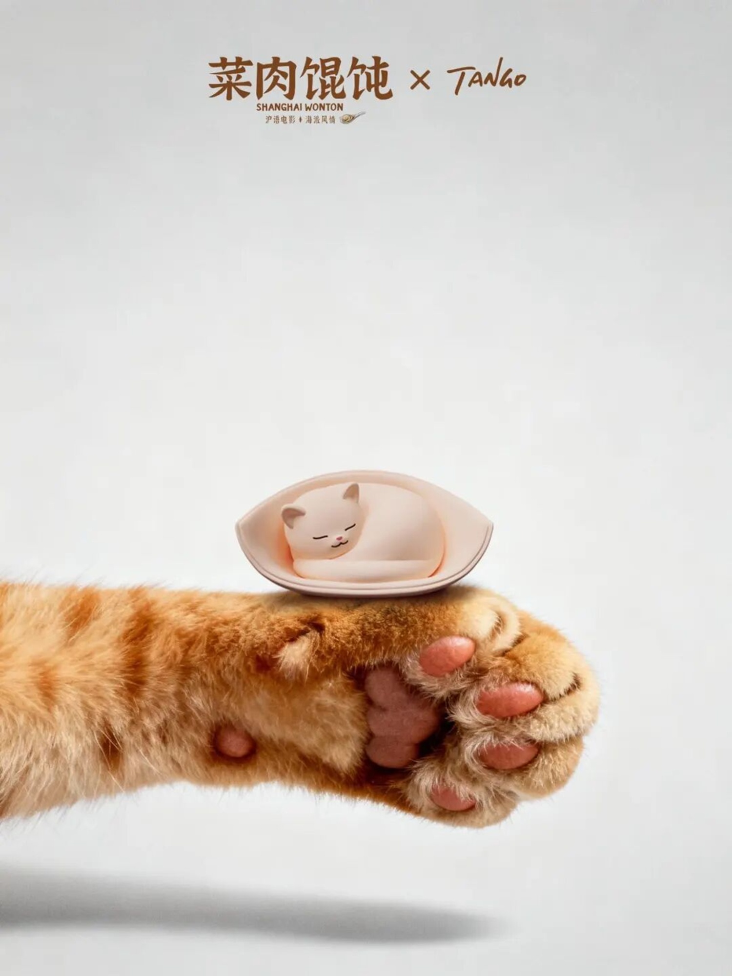 “菜肉馄饨”包裹“软萌睡猫”摆件