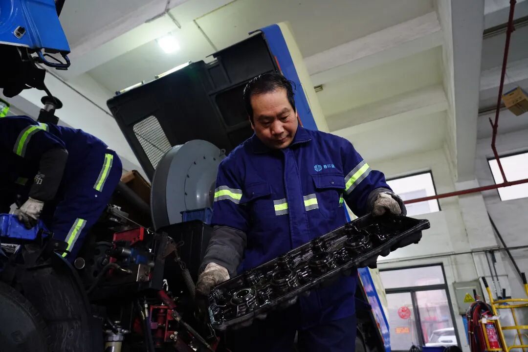 他带领班组优化维修流程、创新技术手段,不仅解决了传统扫路车因吸盘设计缺陷导致的清洁不彻底问题,使设备吸力提升30%,更重新设计清洗车喷架结构。