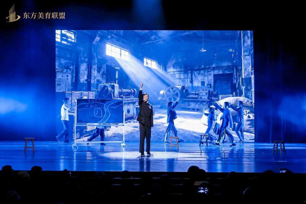 展演节目中,建平中学带来了原创话剧《瞿恩》。这部学生作品改编自东艺制作出品的革命历史题材话剧《人间正道是沧桑》,融合瞿秋白、周恩来等革命先辈的事迹进行艺术创作,勾勒了共产党员瞿恩的革命生涯。东艺向学校授权并予以指导,由建平中学挹芬剧社的学生们进行创作,排演了两部校园版,且在前不久的第四届上海校园戏剧节中大放异彩,荣获“优秀剧目奖”。历史课本与戏剧的结合,诠释了美育在传承红色文化、筑牢理想信念方面的深远意义,并推动美育与德育的有机融合。