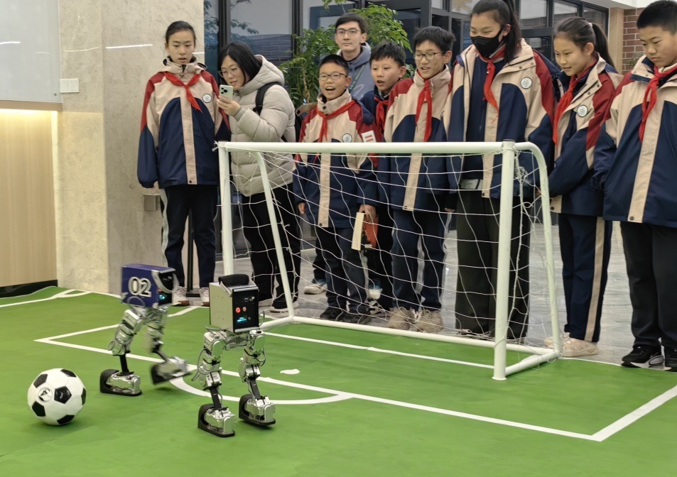 当日的建西校园里,集中展示了多款最新人工智能教育终端,吸引众多学生和参会者深度体验。在 Deepracer 自动驾驶小赛车平台上,可完成从模拟训练到真实驾驶的完整流程;围坐于小组数字研修桌旁,资料搜索、合作讨论更加便捷高效;动动手指即可开展的足球机器人对抗赛、能深度对弈的象棋机器人、可纠正动作的 AI 太极武术智能终端,让大家直观感受 AI 与教育结合的趣味与价值。
