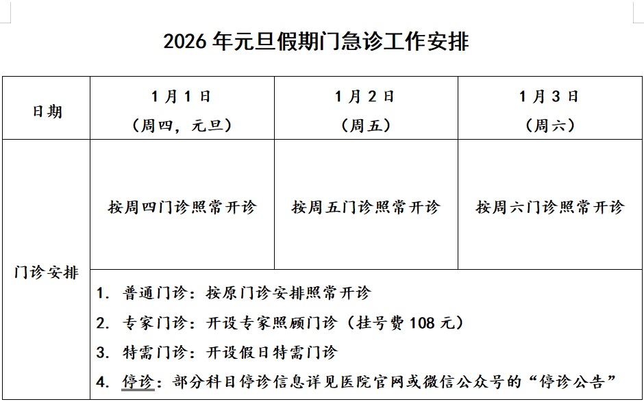 元旦假期门急诊工作安排