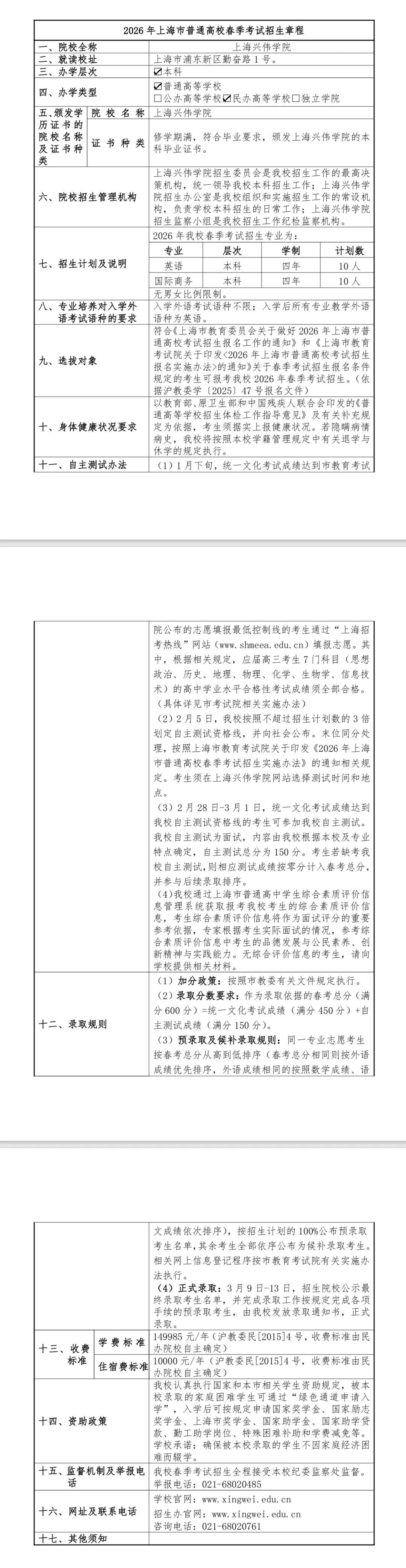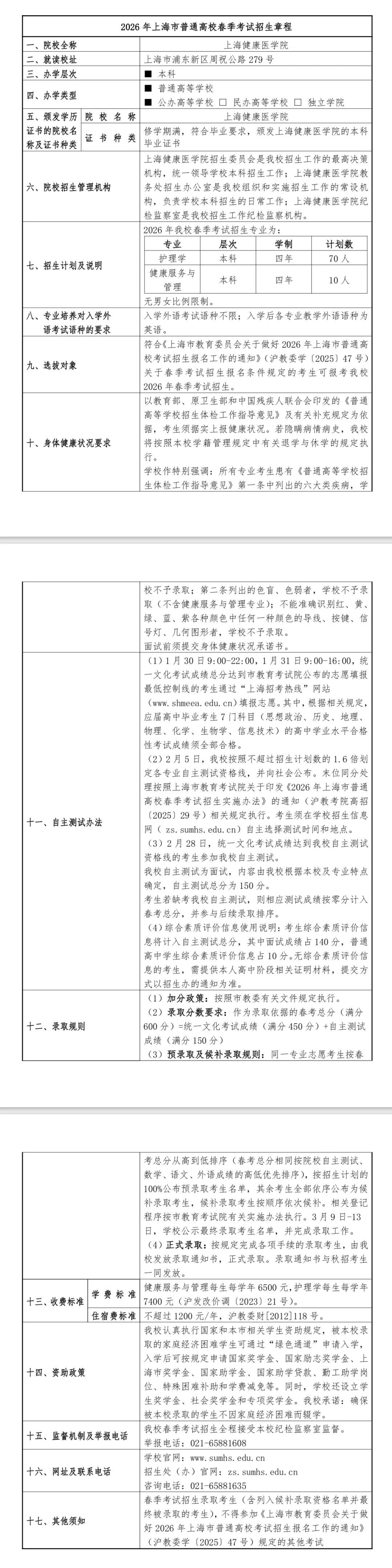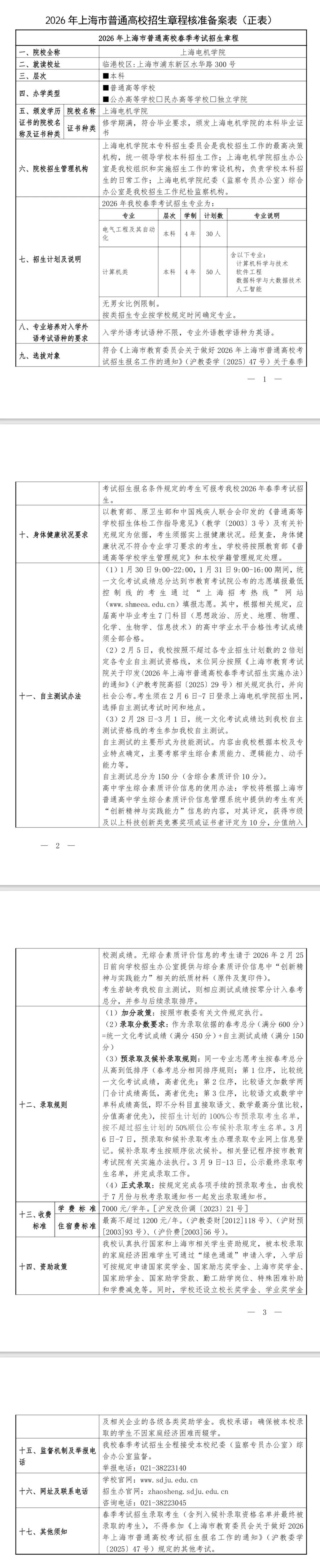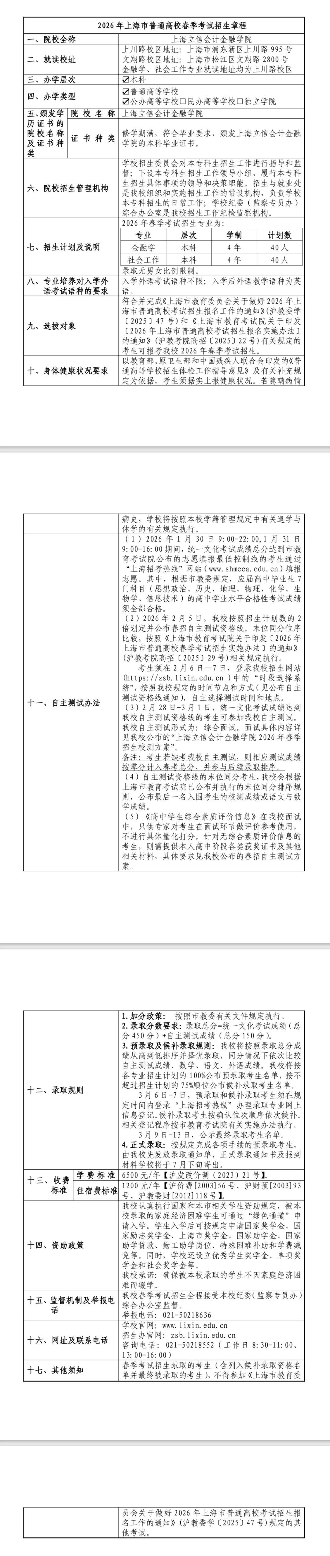 市教委公布2026年上海市普通高校春季考试招生(以下简称“春考”)26所试点院校的招生章程。为方便广大考生及家长掌握信息,小编将26所院校招生简章进行了整理。快来查看心仪院校的招生情况吧! 提醒大家注意:相较去年,部分高校的专业有所调整,请各位考生仔细查看。 上海理工大学 (滑动查看↓) (滑动查看↓) (滑动查看↓) (滑动查看↓) (滑动查看↓) (滑动查看↓) (滑动查看↓) (滑动查看↓) 上海师范大学 (滑动查看↓) (滑动查看↓) (滑动查看↓) (滑动查看↓) (滑动查看↓) (滑动查看↓) (滑动查看↓) (滑动查看↓) (滑动查看↓) (滑动查看↓) (滑动查看↓) (滑动查看↓) (滑动查看↓) (滑动查看↓) (滑动查看↓) (滑动查看↓) (滑动查看↓) (滑动查看↓) 资料:上海教育、上海发布 编辑:王雨思 点击“阅读原文”查看原文件