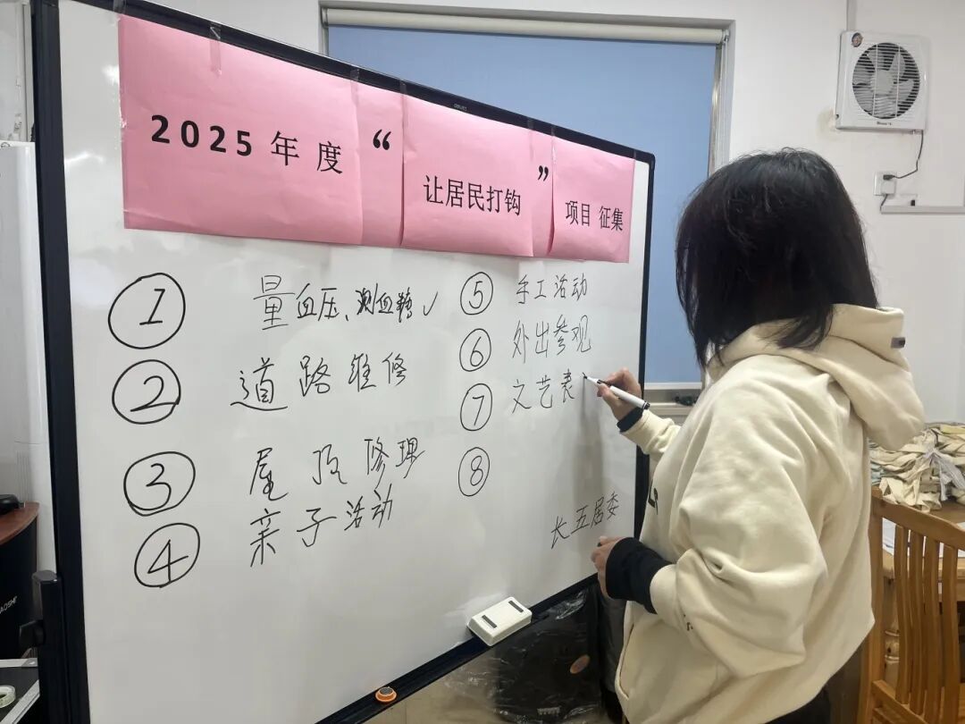 2025年年初,居民区党总支、居委会依托“四百”大走访、居民代表大会及各类社区活动,广泛征集居民诉求。通过“两委”班子成员与居民代表共同商议,并采取“线上+线下”相结合的方式发起民主推选,最终,“华浜新村小区房屋综合修缮”在居民手中一勾一划间,高票当选为年度“让居民打钩”头号民心工程。
