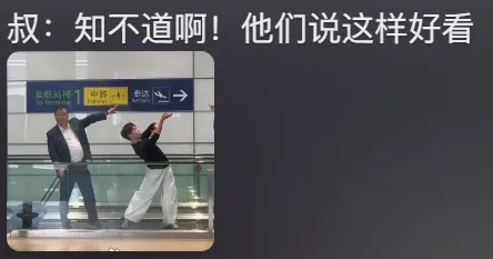 今年11月,云南一舞团发布了一则拍摄于浦东机场的快闪视频。当一位位专业舞者摆出“敦煌飞天”姿势在自动人行道上平移出画时,队尾一位路人大叔,也跟风摆出了一个姿势。