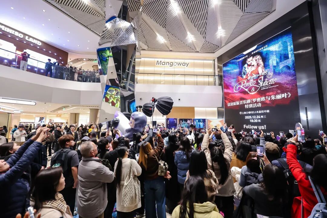 这是CP静安联动上海文化广场年末大戏——法语原版音乐剧《罗密欧与朱丽叶》(简称“法罗朱”)特别策划的快闪活动,也是一场文化与商业深度融合的沉浸式消费盛宴。本场活动旨在通过“文化进商圈”的创新形式,将世界级艺术IP带入市民日常消费场景,以文化内容激发消费活力。