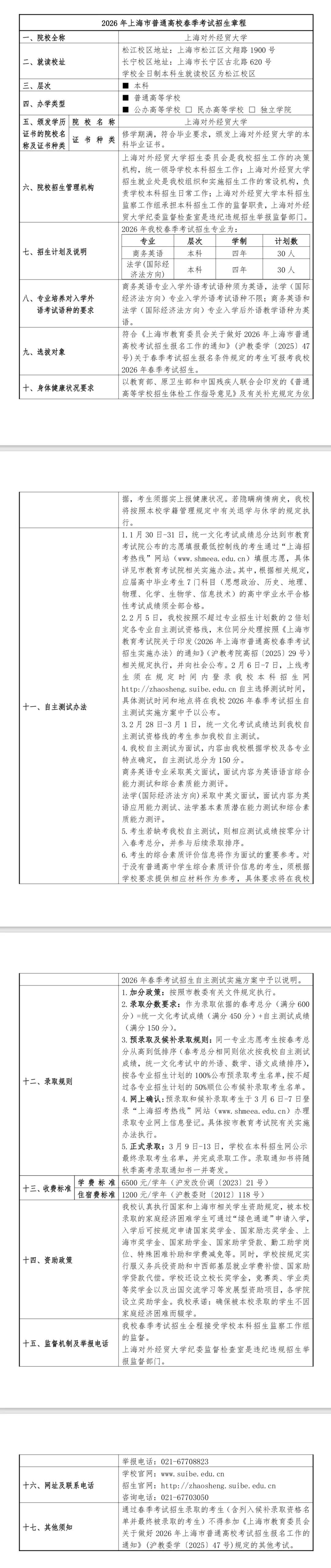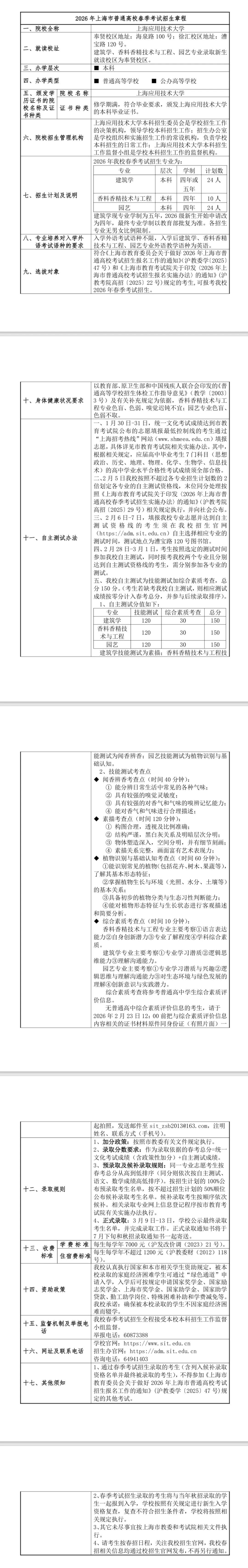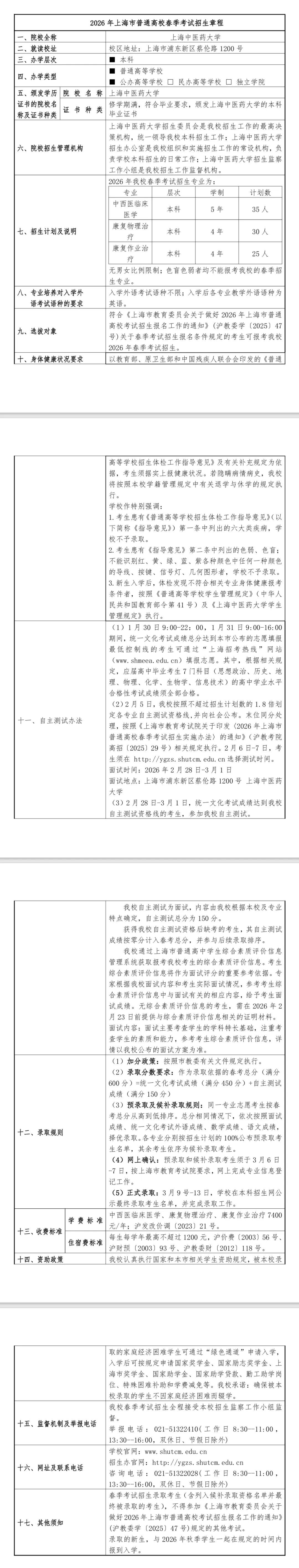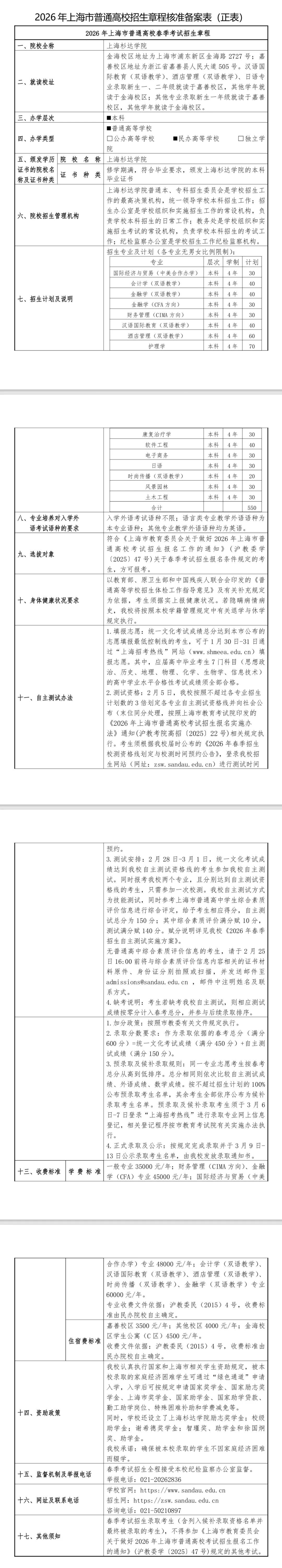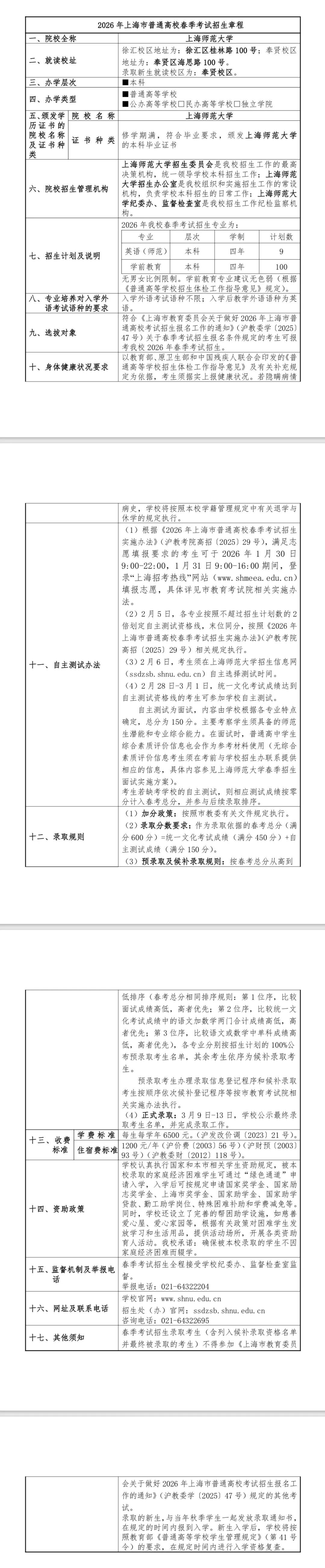 市教委公布2026年上海市普通高校春季考试招生(以下简称“春考”)26所试点院校的招生章程。为方便广大考生及家长掌握信息,小编将26所院校招生简章进行了整理。快来查看心仪院校的招生情况吧!