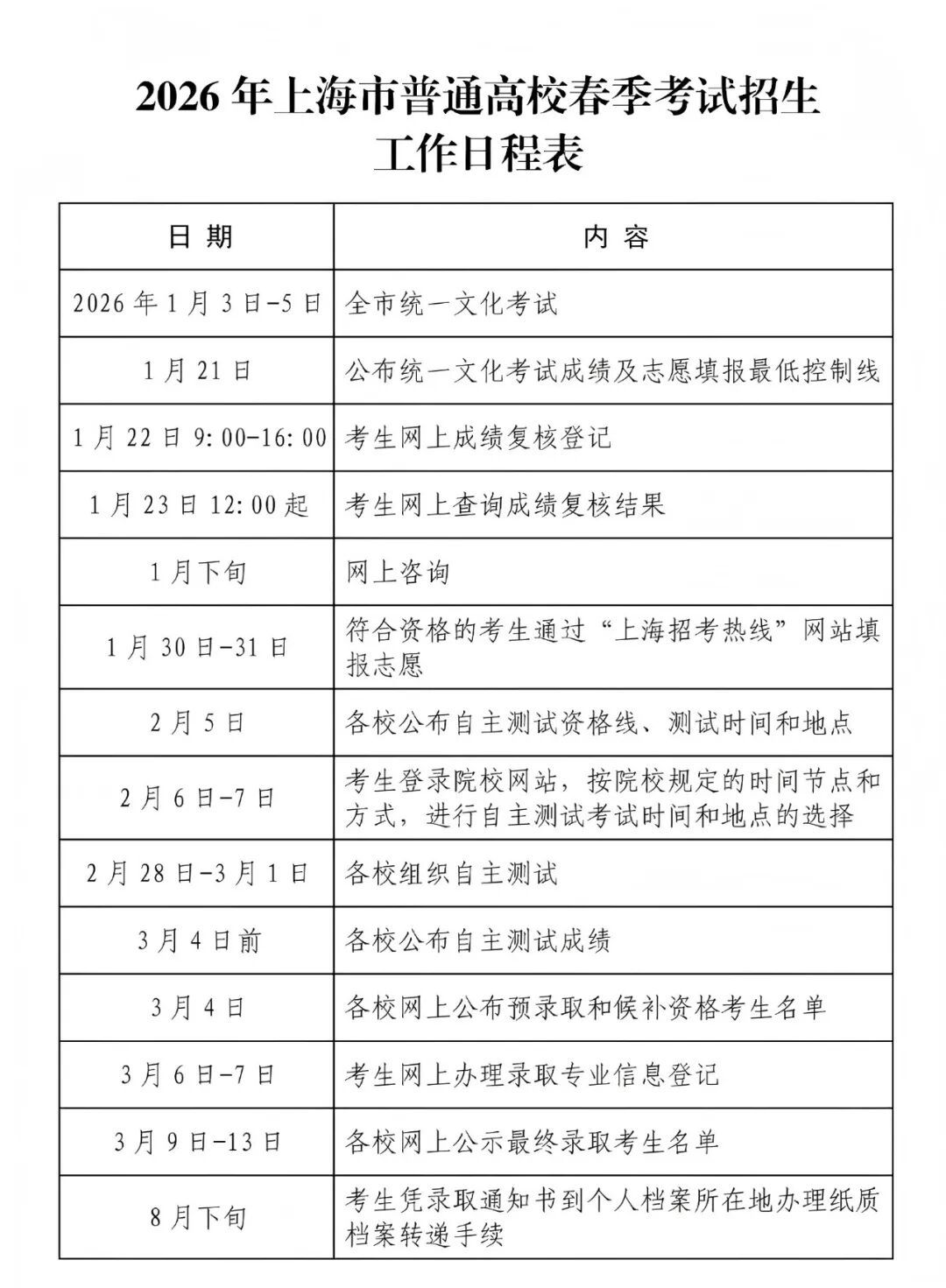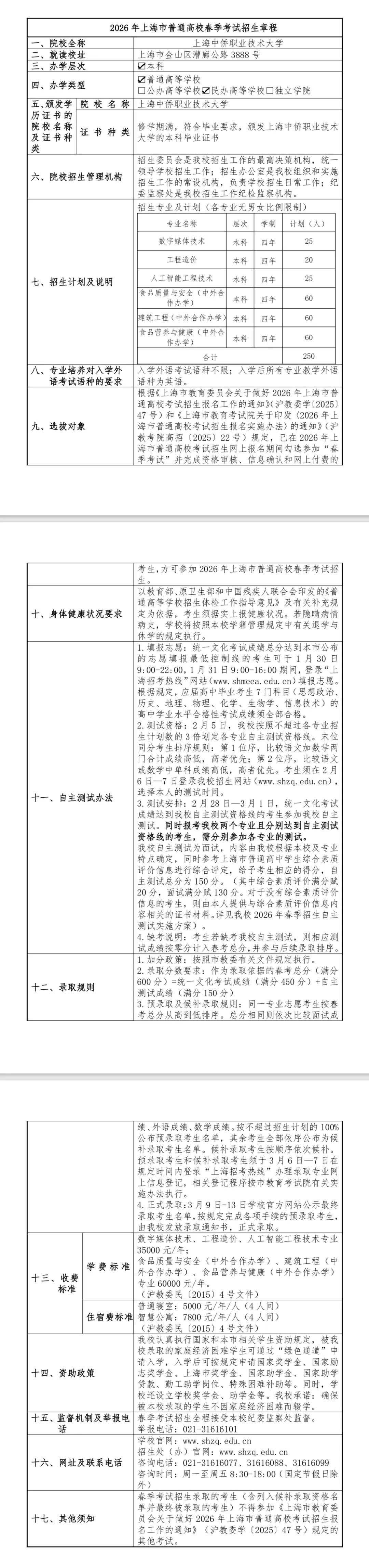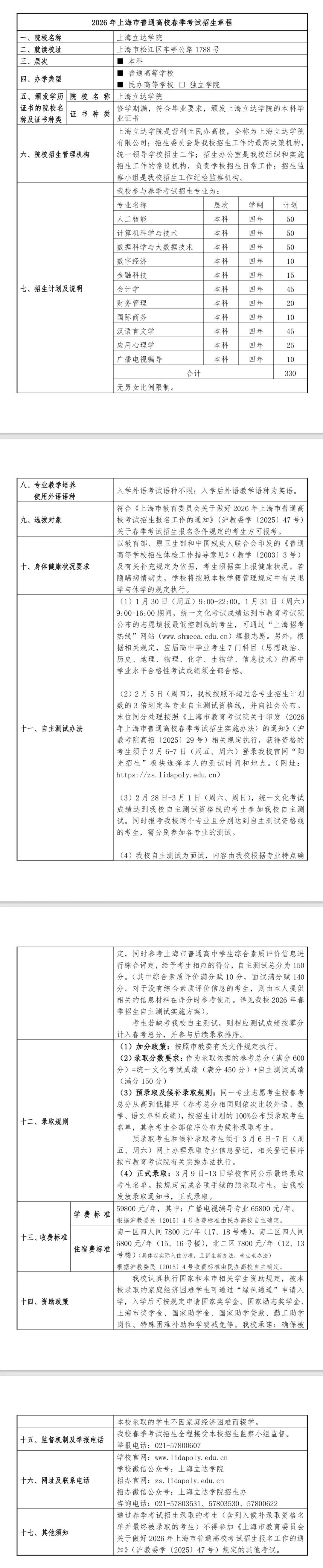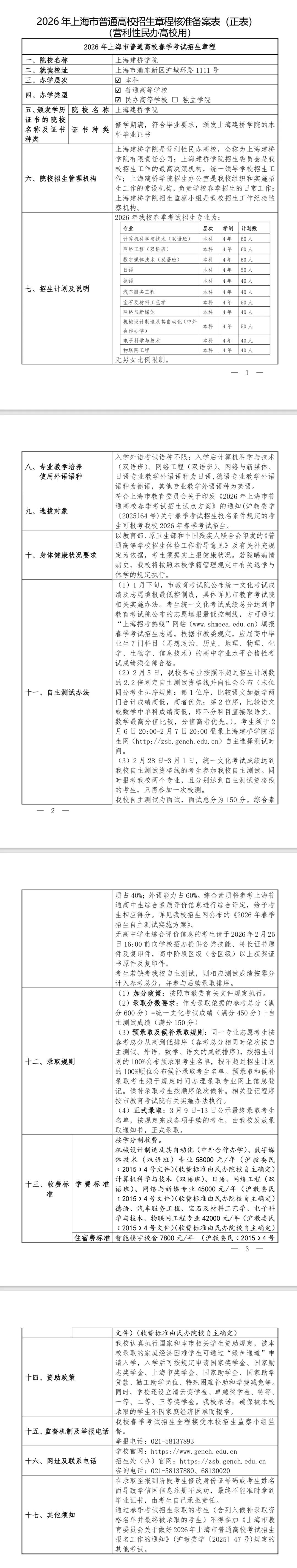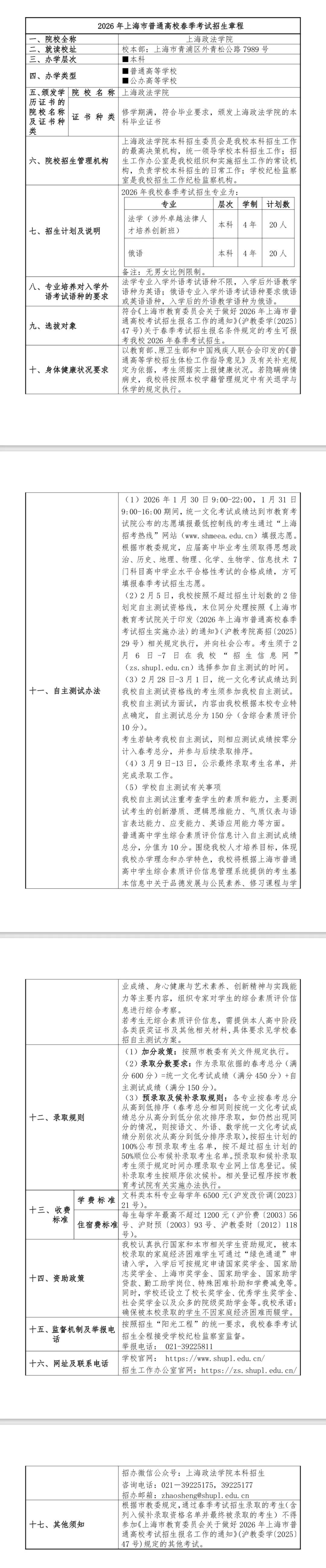 市教委公布2026年上海市普通高校春季考试招生(以下简称“春考”)26所试点院校的招生章程。为方便广大考生及家长掌握信息,小编将26所院校招生简章进行了整理。快来查看心仪院校的招生情况吧!