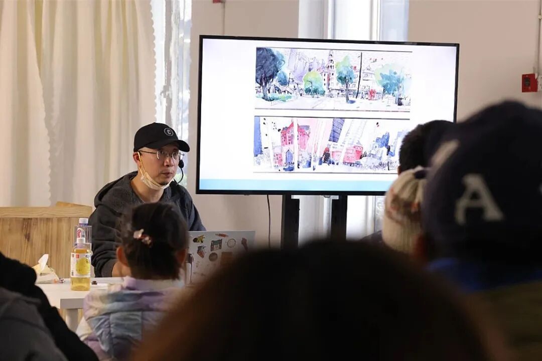 ,带领参与者们走出家门,走进街区,用画笔把街区里的建筑、公共空间乃至城市日常等各种身边的美好点滴都用心记录下来。这种“边走边画”的方式打破专业门槛的限制,让大家得以放慢脚步,按照自己的节奏去观察自己生活、工作的街区,感受历史与生活的细节,也让文明实践在街头悄悄“生根发芽”。