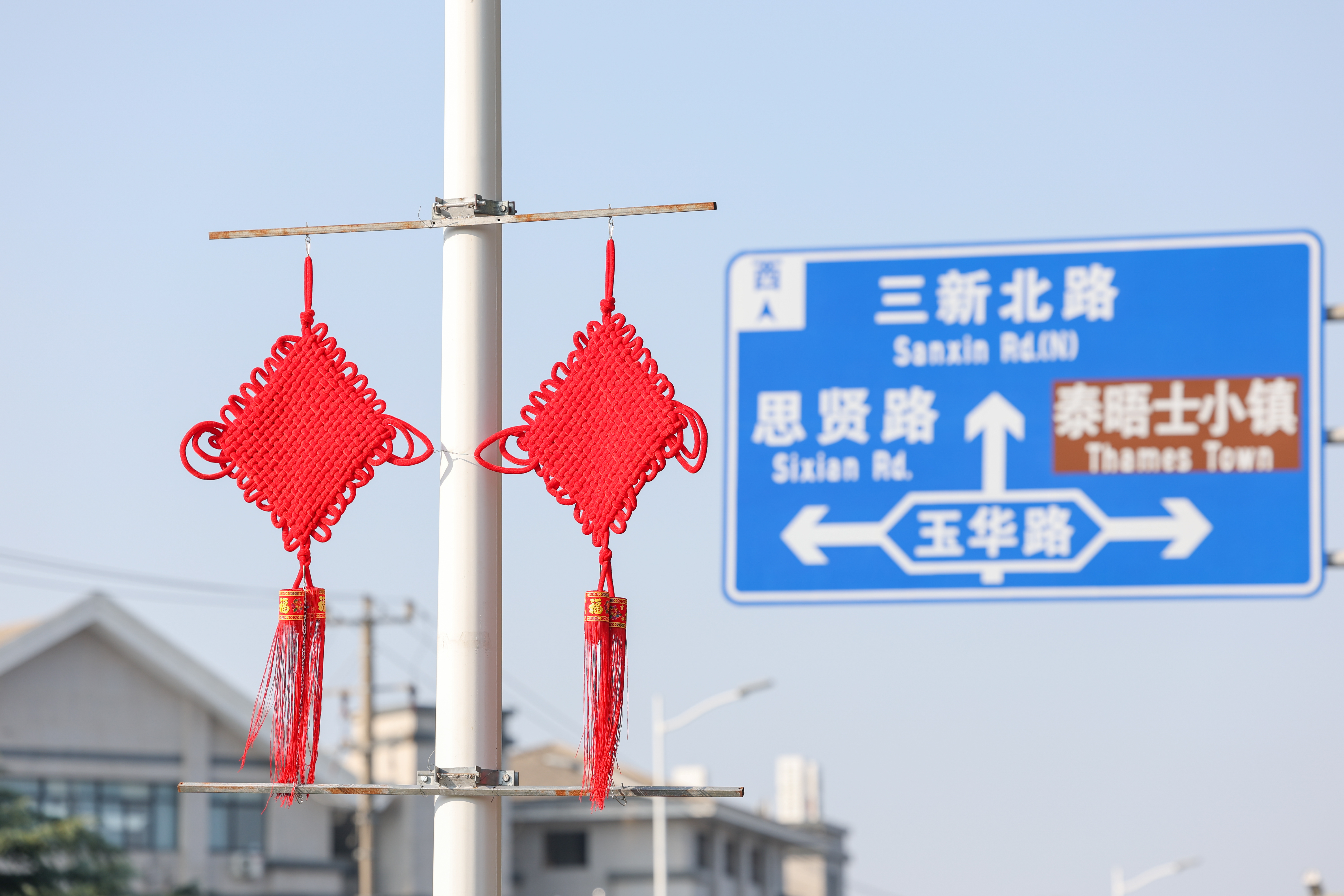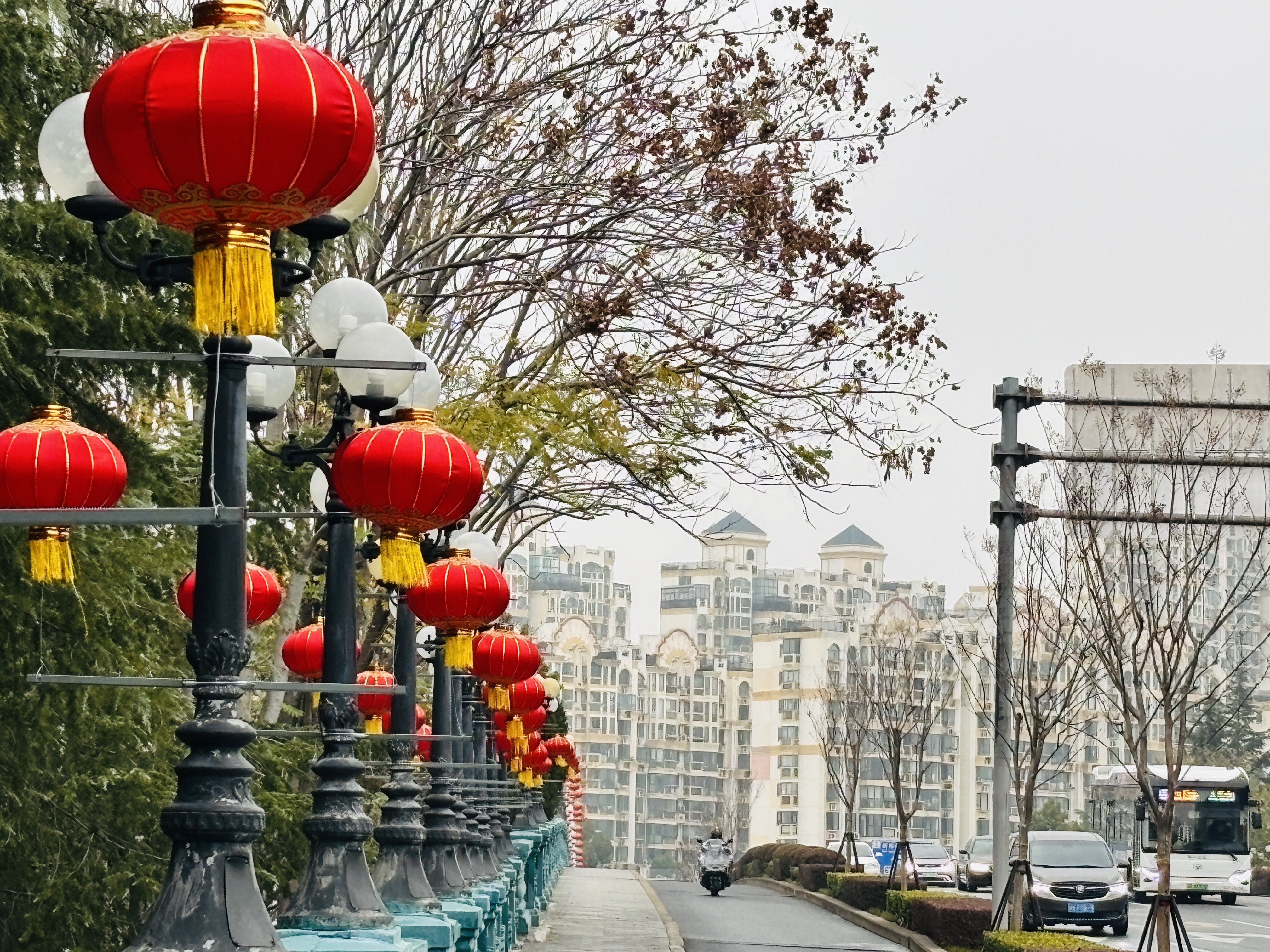 据方松街道相关负责人介绍,目前街道已在泰晤士小镇,以及三新北路、北翠路、江学路、滨湖路桥面等区域,统一布置中国结、红灯笼500余组。一抹抹中国红铺展在街头巷尾,串联起街道与社区,也唤起人们对新一年的期待。