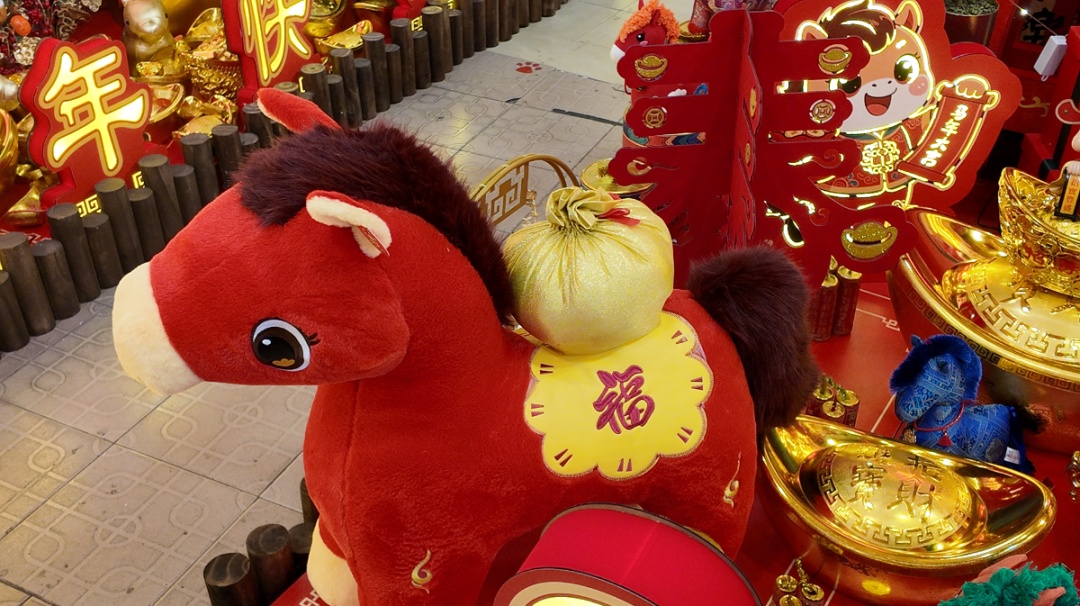 一位店主兴奋地告诉记者:“马年向来是新年装饰品销售的‘大年’。相较于其他生肖,马的寓意更为丰富美好,相关的吉祥成语也格外多,像‘马到成功’‘一马当先’,等等。而且延伸出的‘马上有钱’‘马上发财’‘马上有福’等谐音梗,更是精准地戳中了大家对新年的美好期许,成为拉动销售的‘关键密码’。”