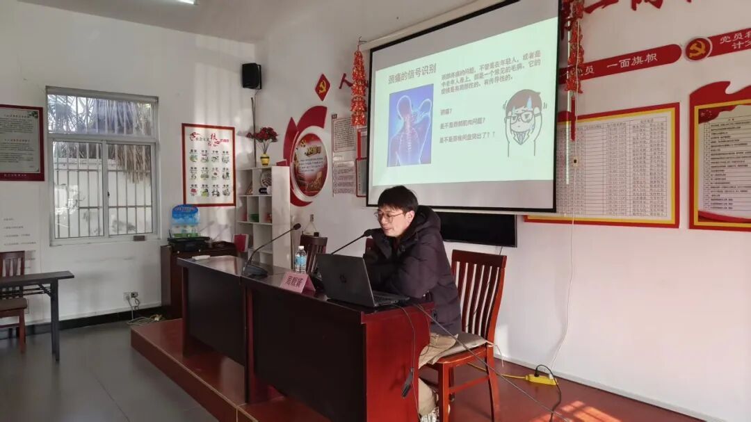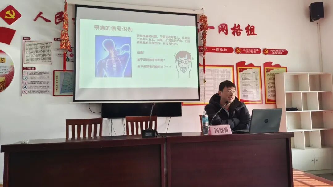 活动中,华东医院团委副书记,健康促进委员会办公室主任秘书周靓贇医生向人民村50余名老年村民,从老年人颈椎生理特点、老年人居家锻炼误区、老年人居家方式科普三个方面进行讲解,指导大家如何依据自身身体情况,应以实用有效的锻炼形式。