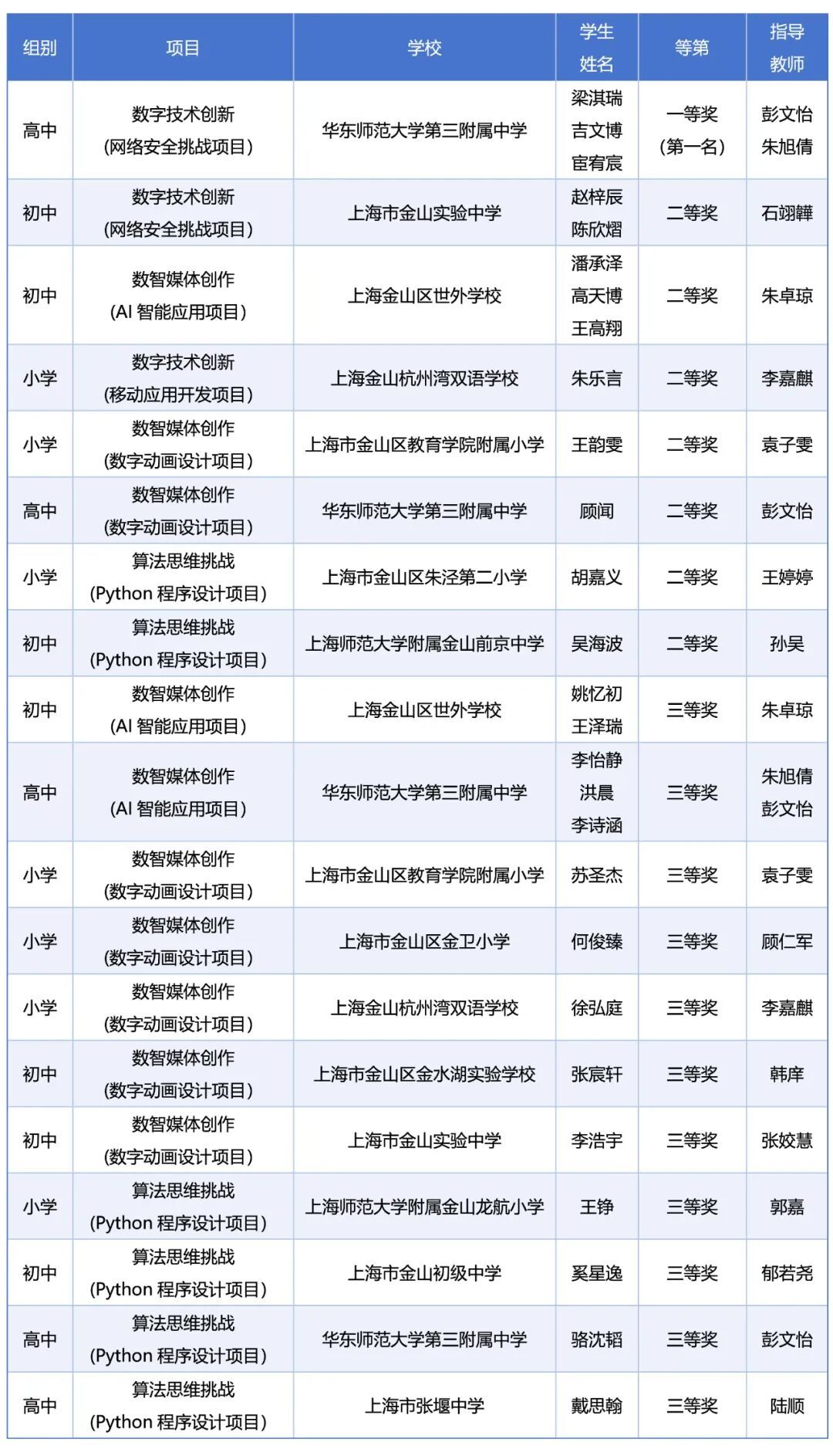 日前,第二十四届上海市青少年计算机创新应用竞赛市级决赛在控江中学举行。我区共有192名学生参与初赛选拔,最终评选出58名学生代表金山区参加市级决赛。经过激烈角逐,共获得团体一等奖(第一名)1个,团体二等奖3个,团体三等奖2个;个人二等奖4个,个人三等奖9个。