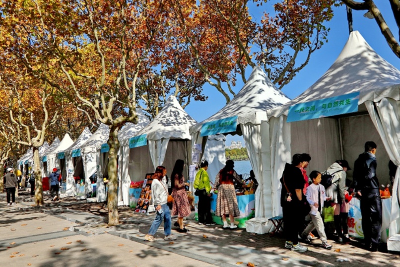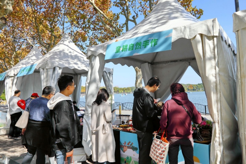 园内湖滨大道区域开设好市发声 · 集食乐行——新年农潮市集,将新鲜的农产品呈现给公园游客,打造“新年、新潮、新鲜”的特色市集。