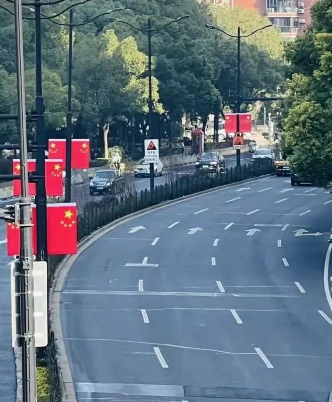 为营造庄重喜庆的节日氛围,长宁区于2025年12月26日至2026年1月5日期间,在长宁路、江苏路、延安西路、天山路、虹桥路、华山路等主要路段集中悬挂国旗。悬挂期间,区景观所组建专项巡查队伍,对国旗悬挂高度、角度、完好程度及清洁状况开展全覆盖巡查,确保国旗始终以整洁庄重的姿态飘扬在街头。