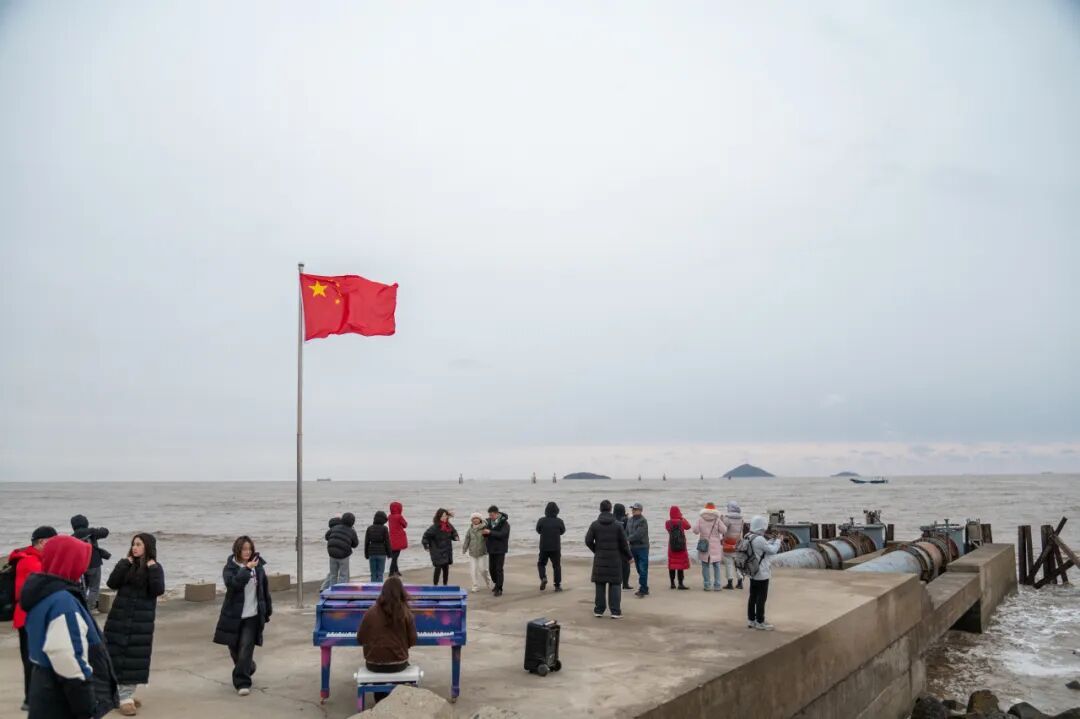 今天(1月1日)清晨,薄雾笼罩着金山城市沙滩车客渡码头,虽然由于天气原因,未能邂逅新年第一缕日出,但市民游客的迎新热忱丝毫未减。