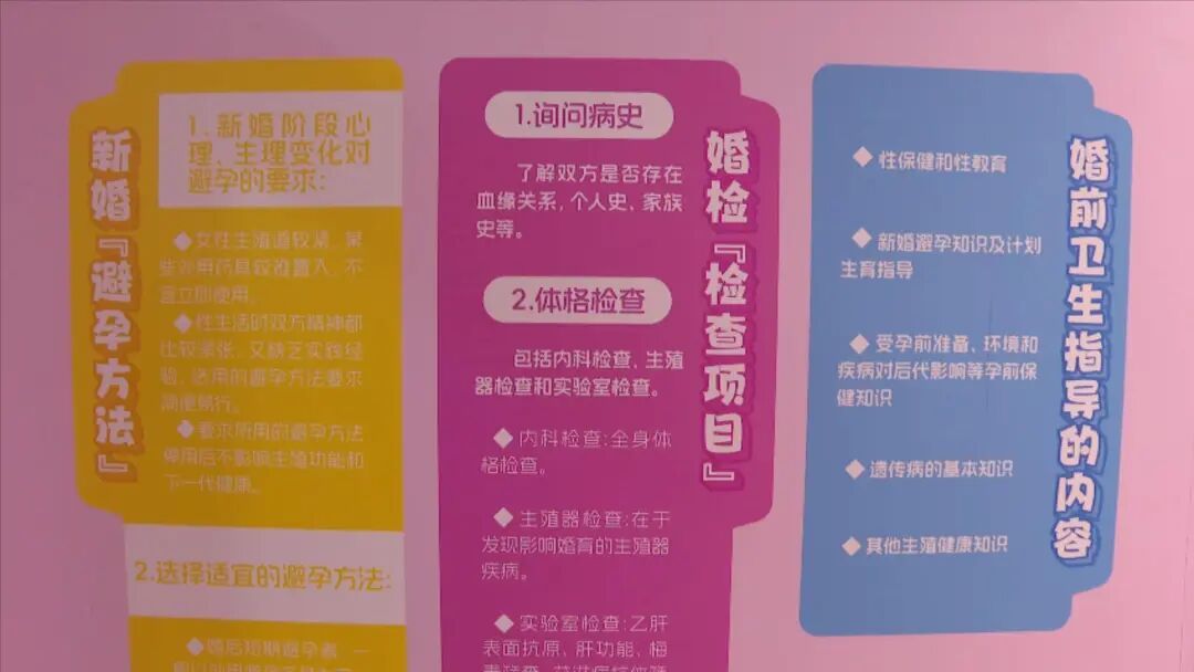 走进全新的婚检中心,粉紫色的主调、清晰的指引标识、舒适的等候区,瞬间打破了人们对医疗场所的刻板印象,扑面而来的是家一般的温馨与暖意。宣教室内备有免费的婚育知识礼包,处处细节都体现着对新人的祝福与关怀。
