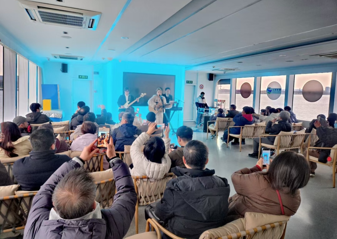 动感的摇滚旋律与流动的江景相互交融,让这场“新年水上第一游”主题航班成为市民游客解锁新年的独特方式。据了解,演艺航班将成为徐汇滨江浦江游览航班的“节日标配”,春节期间类似演艺航班还将继续。