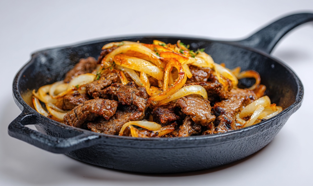 3. 洋葱入油锅中煸出香味后,下肉丝,翻炒片刻,酌加调味品,待洋葱九成熟时即可起锅。