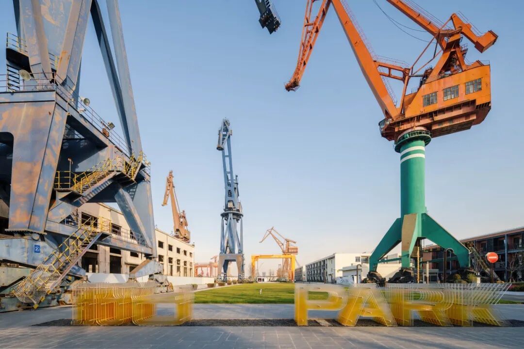 船台PARK 位于杨浦区复兴岛,前身为中华造船厂,保留了大量工业遗存。作为杨浦滨江复兴岛段首个开放的滨水公共空间,船台公园坐拥1.3 公里黄浦江岸线。紧邻上海量子城市时空创新基地,成为连接历史与未来的独特地标。