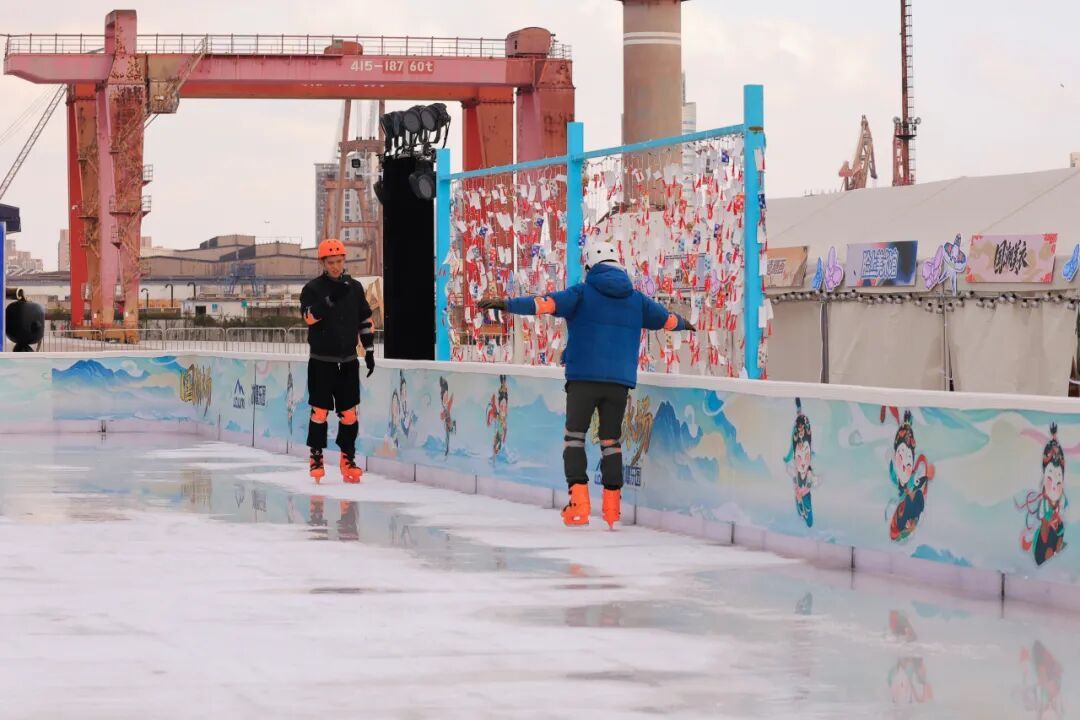 冰场运营负责人表示,复兴岛拥有深厚的工业文化记忆,同时坐拥开阔的滨江景观,期待通过冰雪运动与城市空间的有机融合,让滑冰从一项小众爱好,逐渐走入更多市民的日常生活。