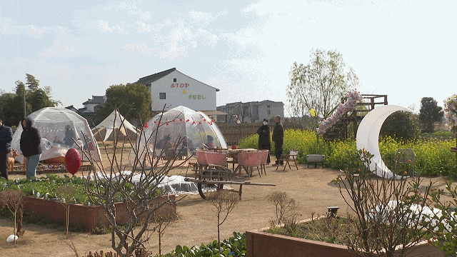 一位来自浦东三林的市民表示:“这里小店的造型都还是挺出挑的,很有节日的氛围。我们两三家人家今天趁着有空,一起来这里喝喝咖啡放松一下,也可以让小孩多和大自然接触。”而另一位本地市民也说:“乡下环境好,我们和朋友基本双休日没事都会约在这里。今天这里人不多不少,太阳也不错,我觉得是我比较喜欢的感觉。”