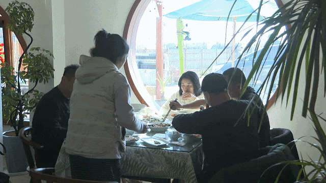等到了中午时分,李窑村的烟火气渐浓。在新开业的“稻李香家菜馆”内,一楼散坐着四五桌客人正在大快朵颐,而二楼包间基本已经客满。用柴火慢炖的咸肉菜饭和现摘的时令鲜蔬,获得了大家一致好评。自开业以来,饭店借其地道家常的菜式和新中式装修风格,吸引了不少市民前来。“菜的味道都不错,价格也适中。我们昨天在李窑村住了一晚,感觉休息得特别好,以后有机会会常来。”一位食客说道。