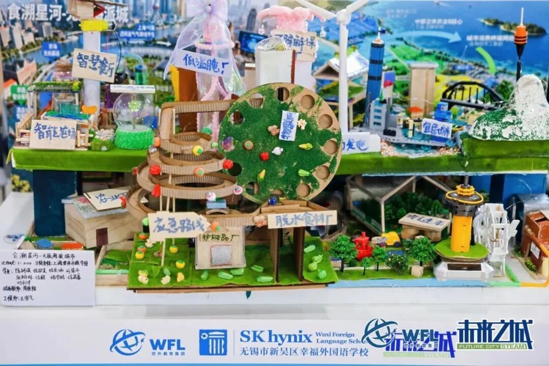 七(4)班学生聚焦100年后上海“食溯星河-无废海派城市”项目,深入剖析其突破传统食品供应与浪费处理局限,达成食品循环与无废理念深度融合的设计逻辑。项目着重探讨模型中农场生产、食品运输、餐桌消费及废弃物处理等核心环节,在复杂城市环境下实现食品零浪费的作用机制。通过“精准生产+全程循环”的路径,构建了“农场-餐桌-再生”的无废城市体系,为全球不同城市解决食品浪费问题提供了实践参考。该项目巧妙融合海派文化与环保理念,模型充满创意,论文数据翔实,话剧展现出浓郁的文化氛围,获得了团队综合二等奖。