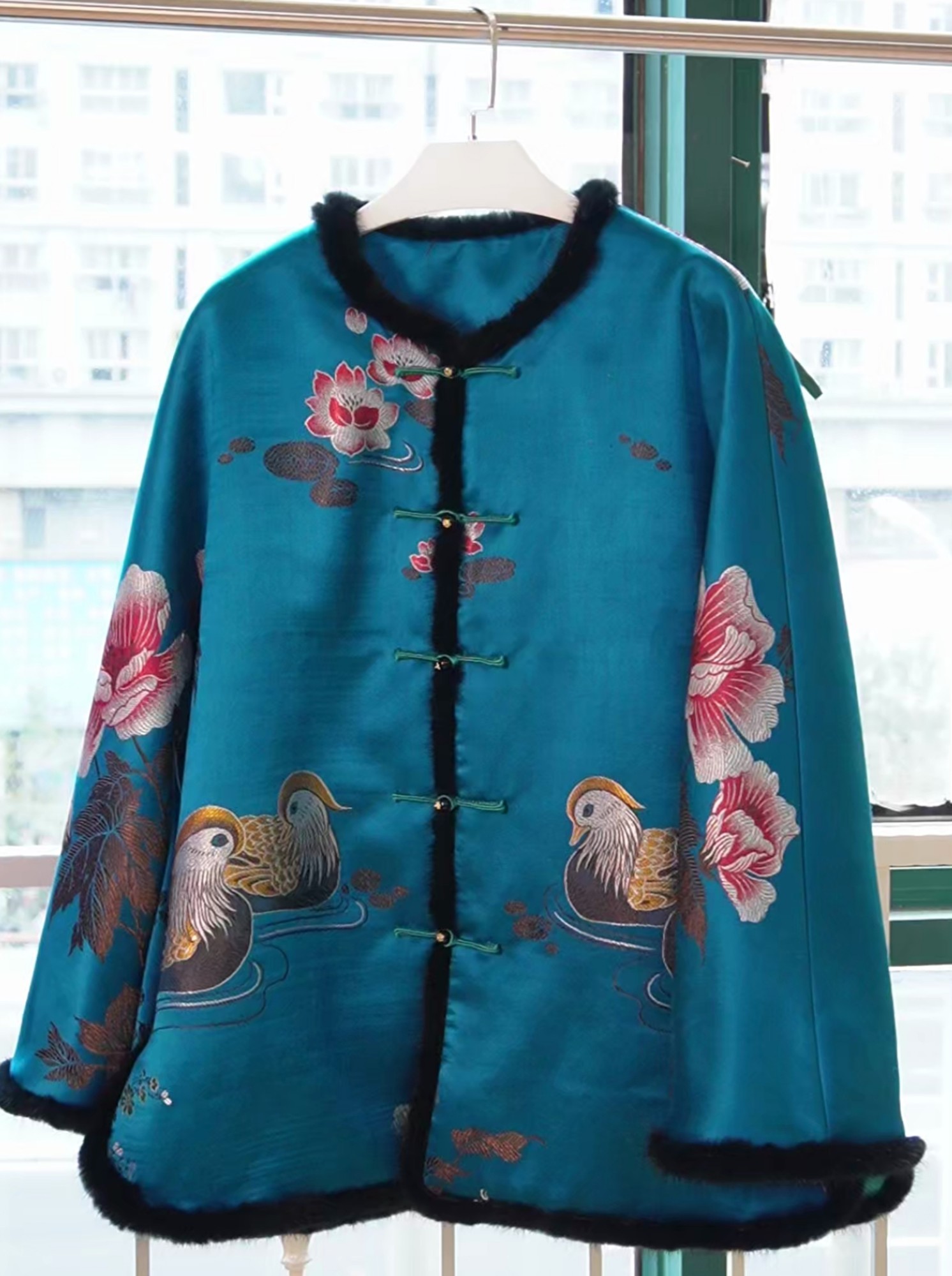 • 奶奶:大气典雅的翠蓝色鸳鸯棉衣