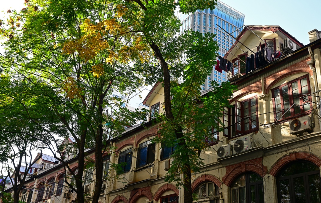 ,葱茏乔木掩映下的老洋房与网红小店相映成趣,密密麻麻点缀了风格不一的餐饮店,中外混搭。