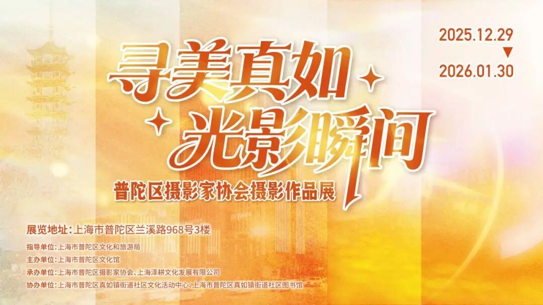 真如,作为上海历史文脉的重要承载地,既有元代真如寺木构建筑的千年古韵、淞沪抗战十九路军军部遗址的红色记忆,也有城市副中心建设的现代活力——高尚领域地标崛起、铜川路旧貌换新、科创空间落地,700年历史与当代发展在此碰撞出独特的“真如之美”。 摄影艺术作为“光与影的艺术”,拥有定格瞬间、诠释美好、传递情感的独特力量。普陀区摄影家协会以专业素养与独特视角,深入真如的街头巷尾、历史地标与蝶变新境。此次展览,既是普陀区摄影家们以摄影艺术为桥梁,对真如地域文化的深度探索与表达;也是通过光影作品,让观众在视觉享受中读懂真如的历史厚度、发展活力与人文温情,感受摄影艺术与地域之美碰撞出的独特魅力。